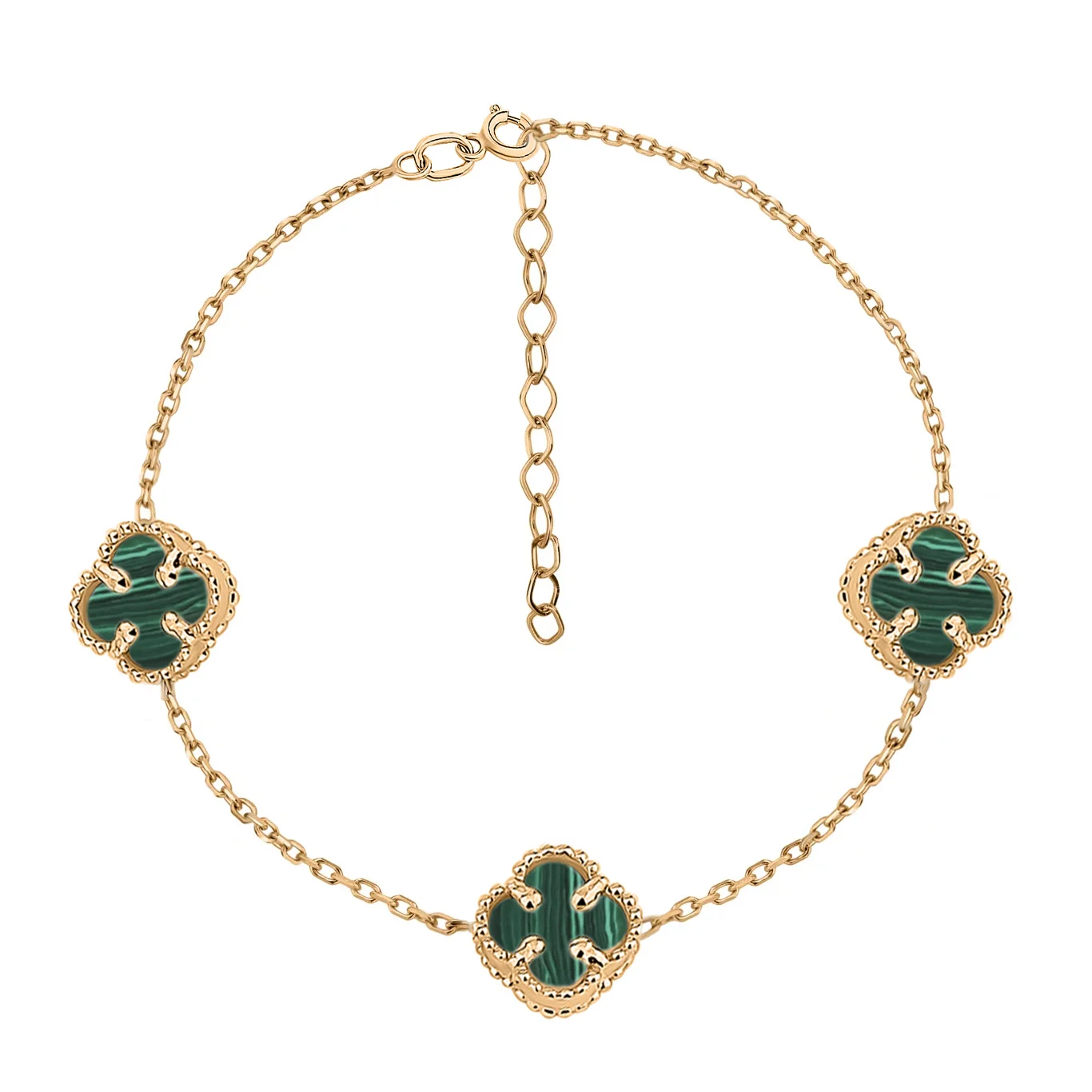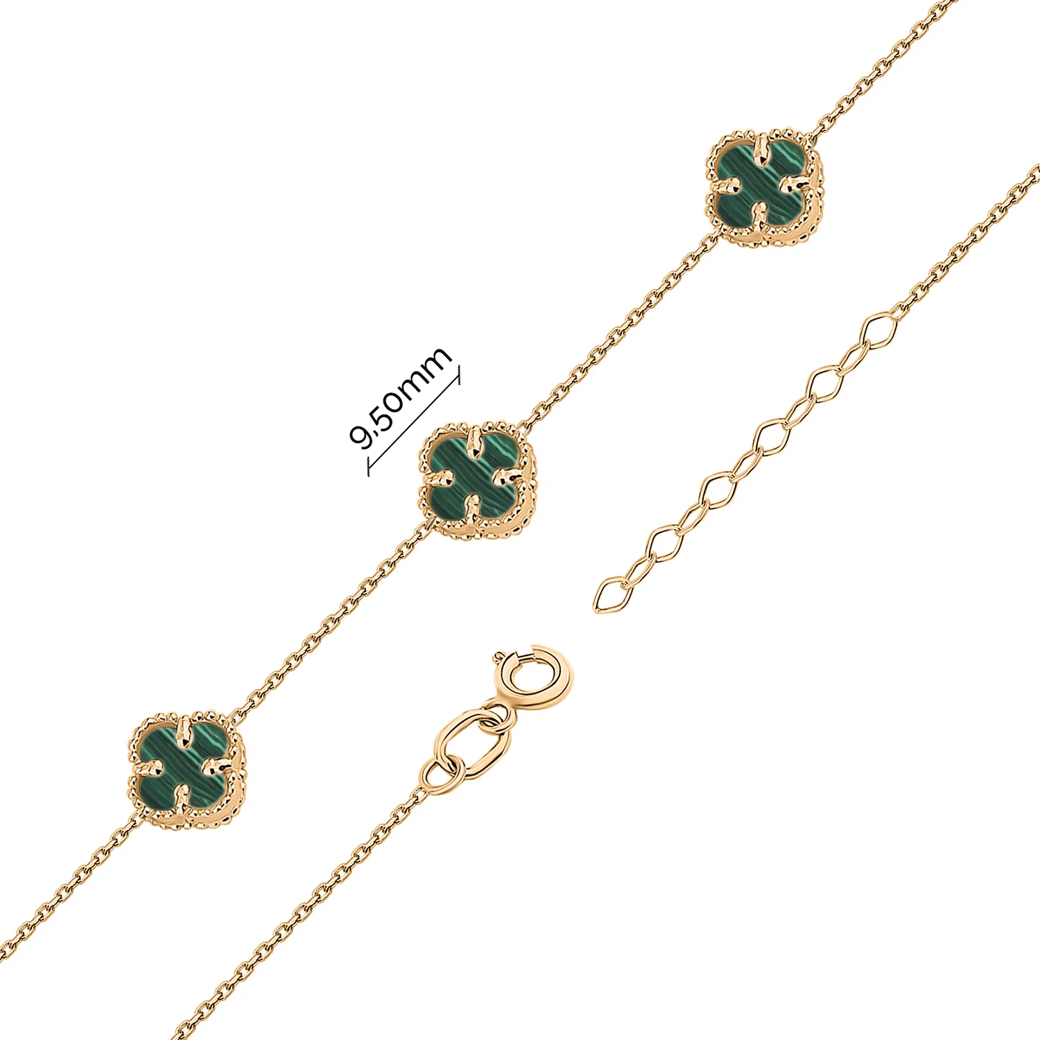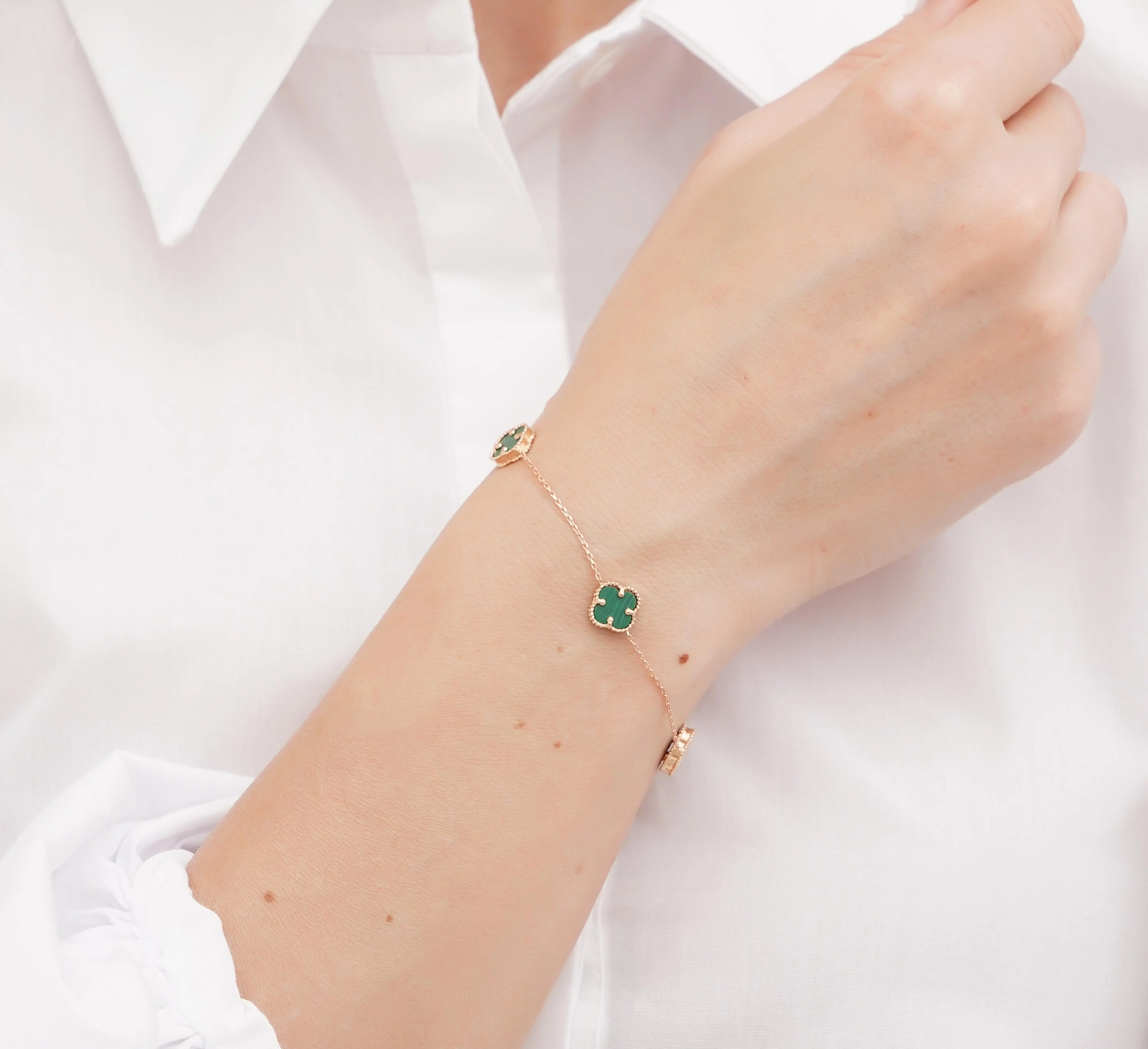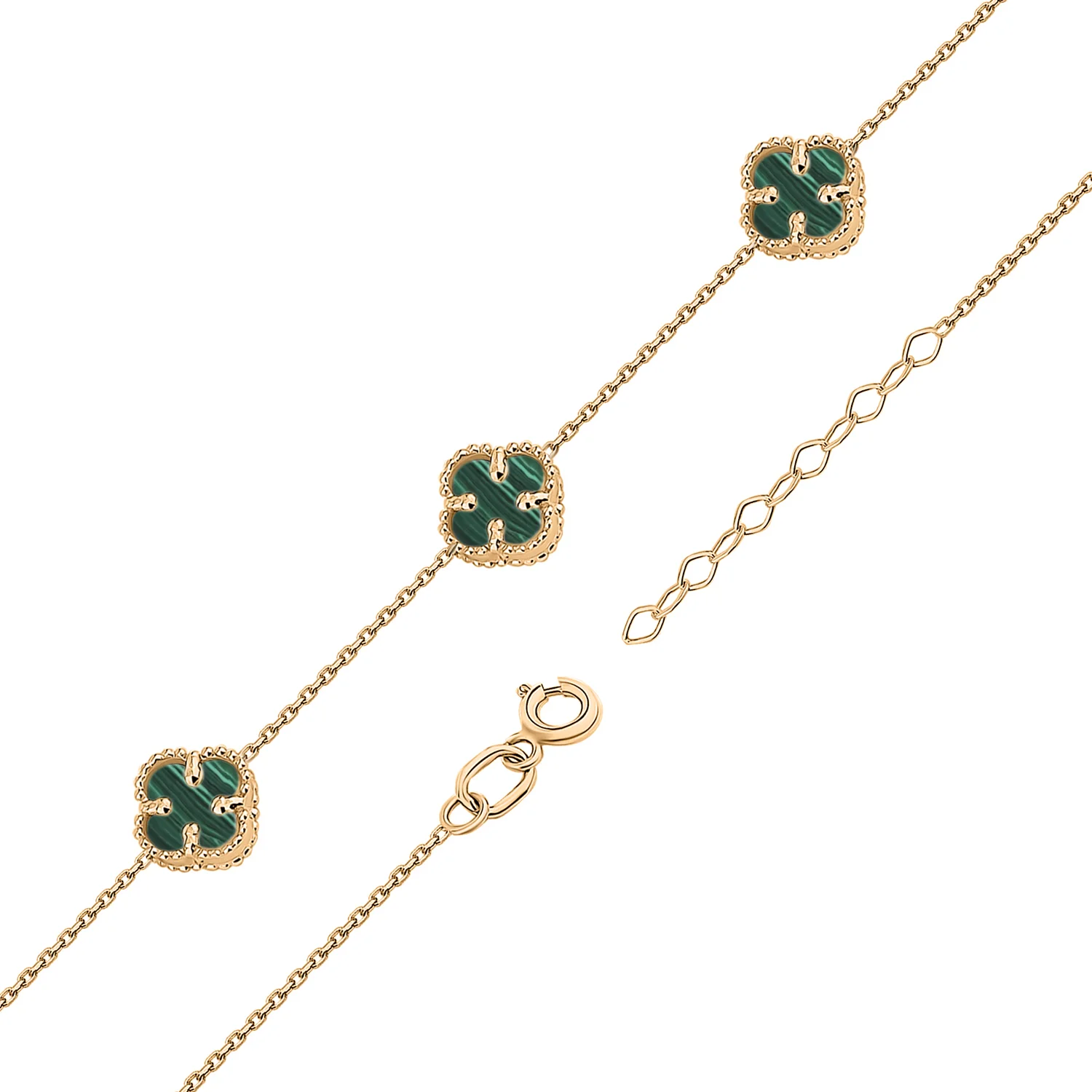 Браслет из красного золота в якорном плетении с малахитом "Клевер" - 1747751