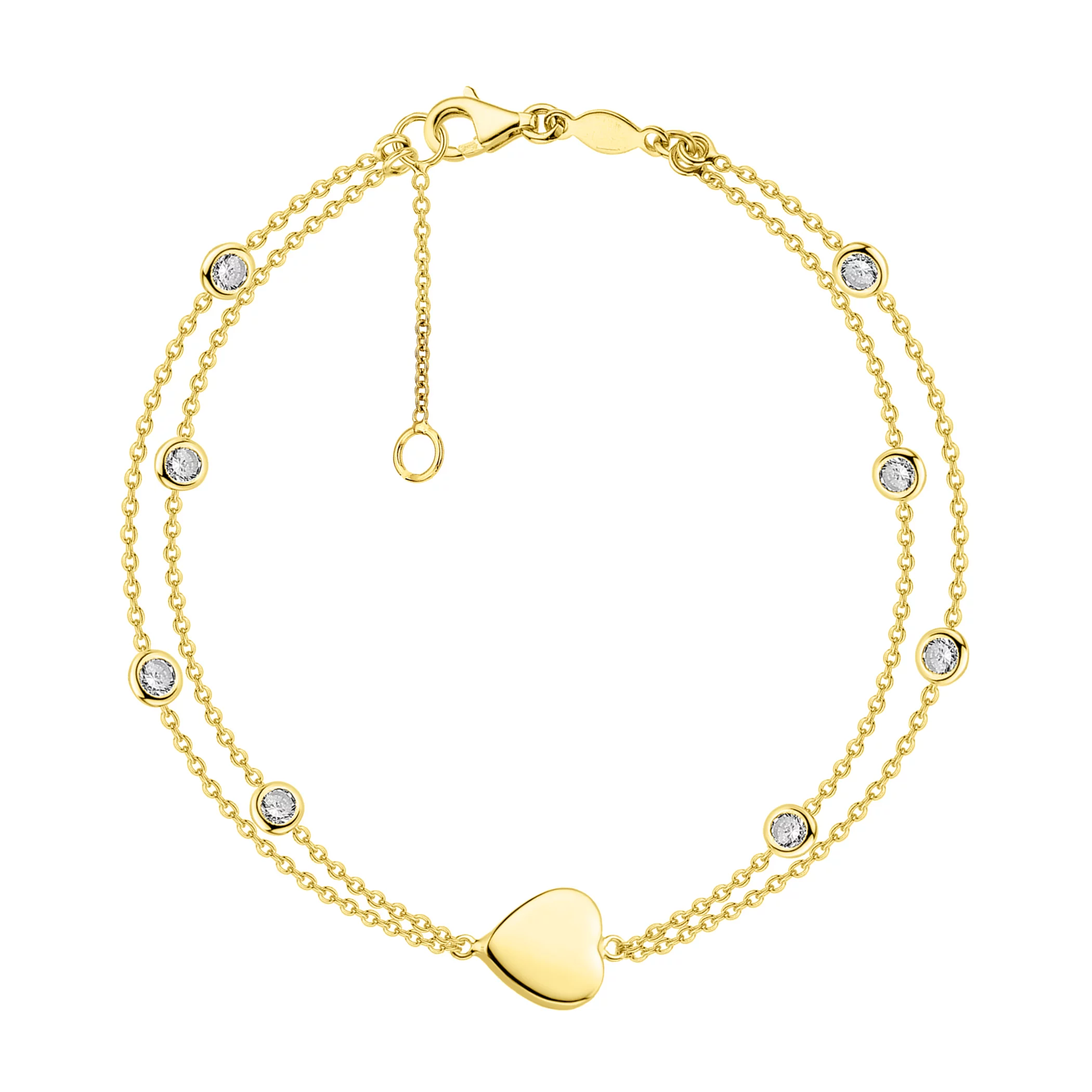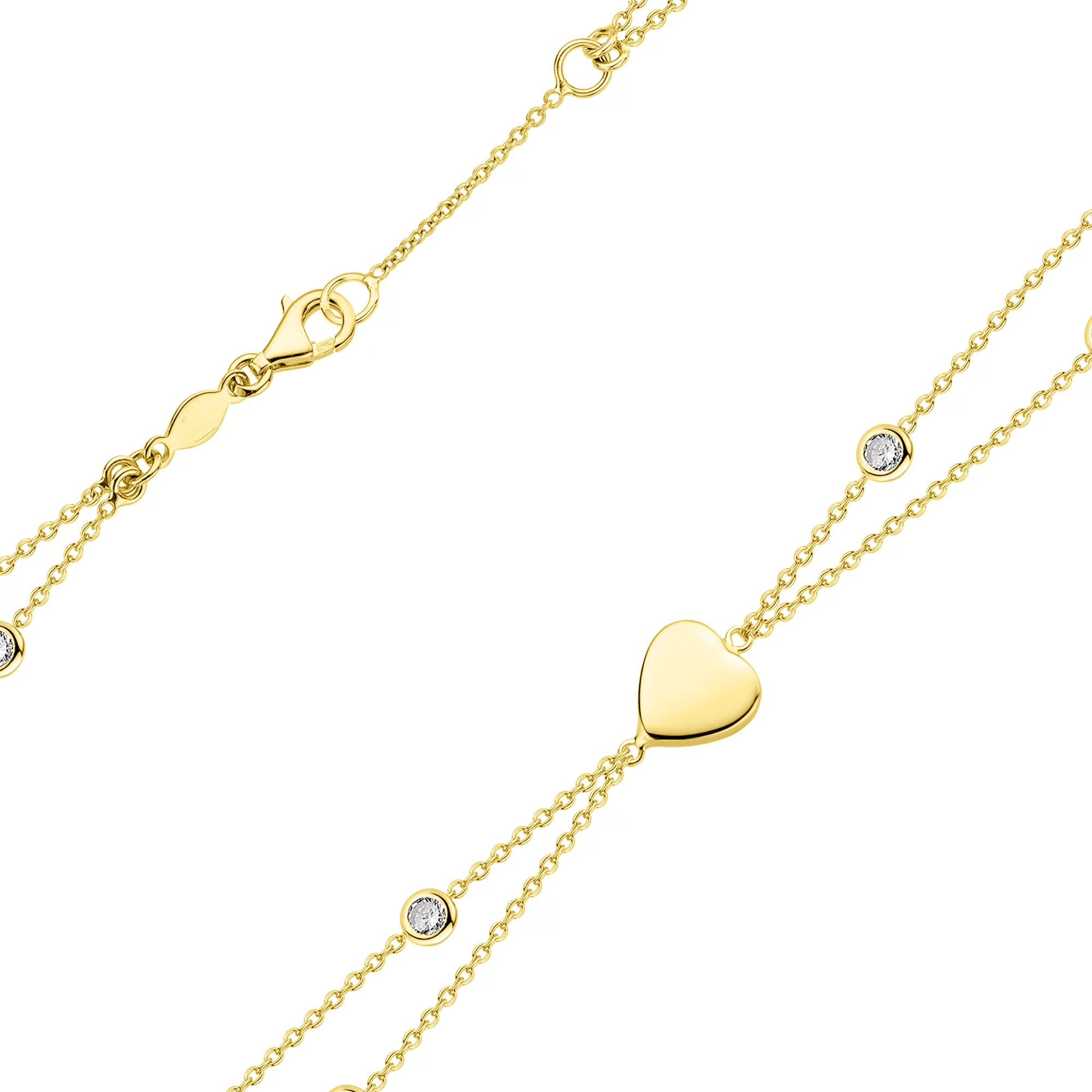 Браслет из комбинированного золота "Сердце" с алмазной гранью, с двойным плетением и фианитами - 1745554
