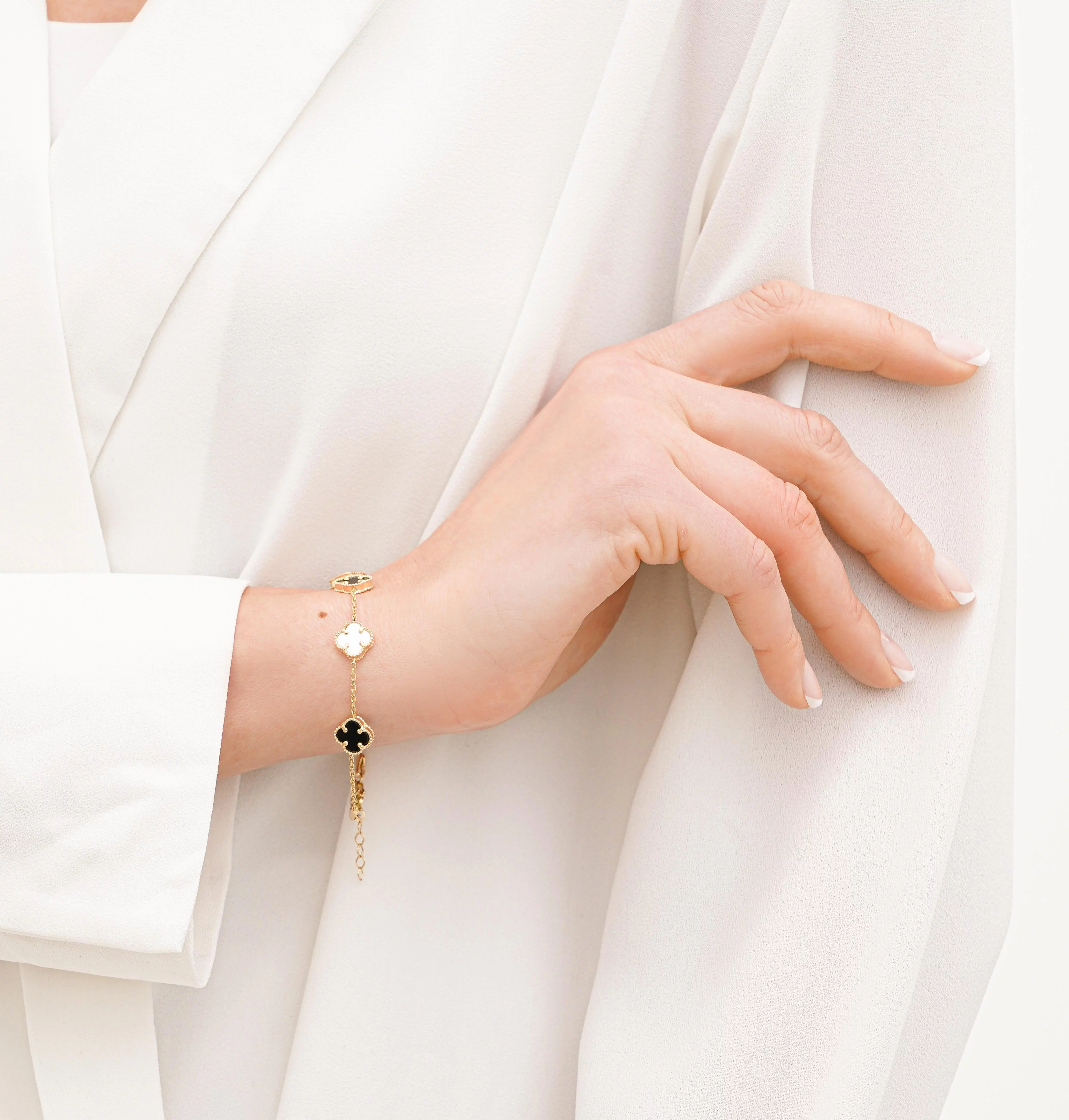 Браслет "Клевер" из красного золота с ониксом в якорном плетении - 1747727
