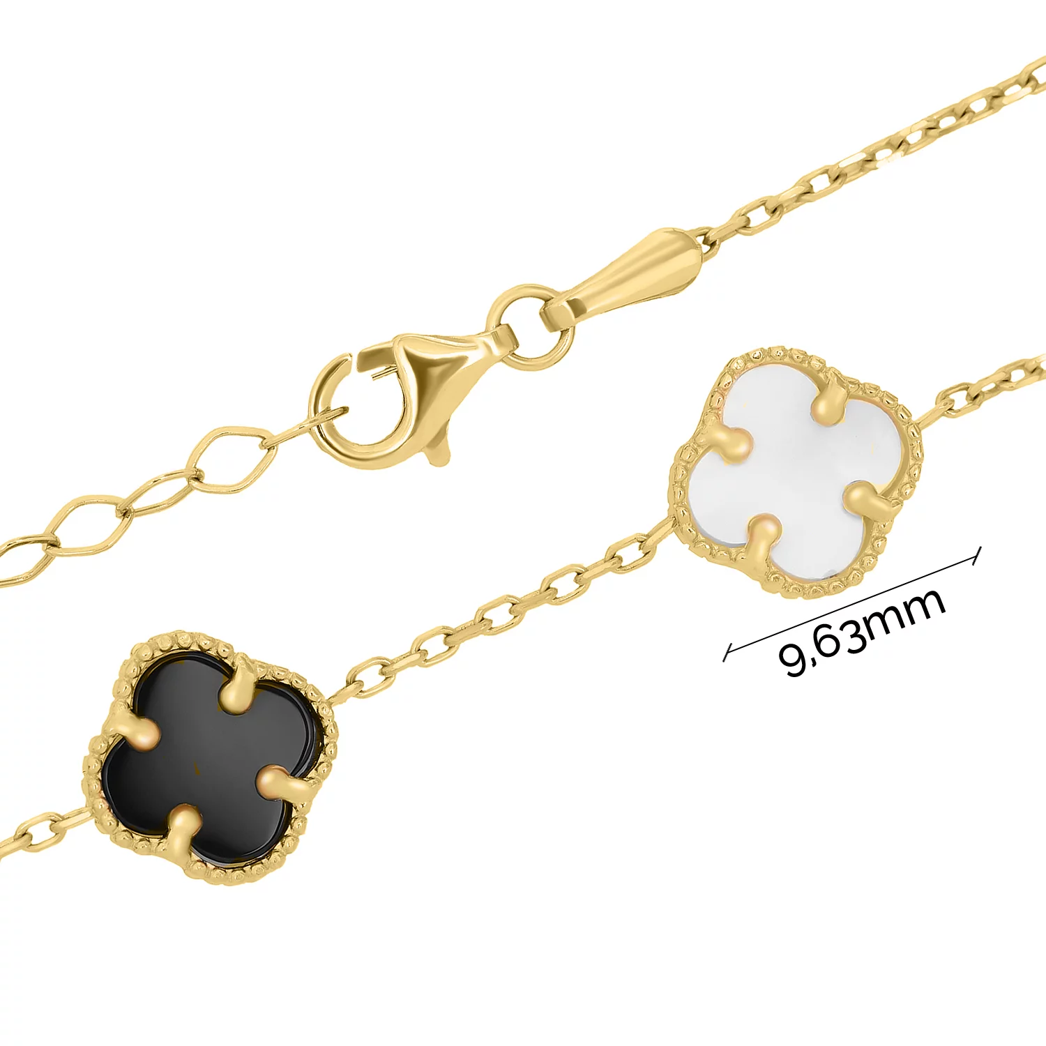 Браслет из белого золота "Клевер" с ониксом плетение якорное - 1512010