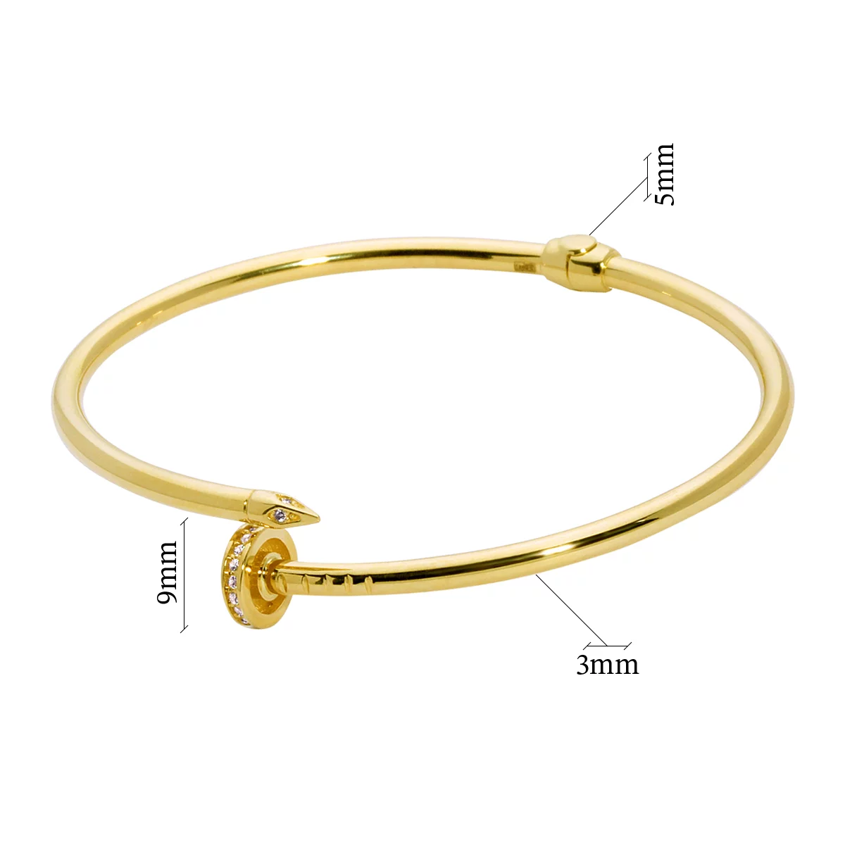 Жесткий браслет "Змея" из красного золота с россыпью фианитов - 1855986