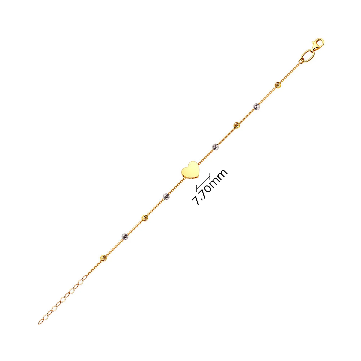 Браслет из комбинированного золота с шариками "Сердце" плетение якорь - 870330