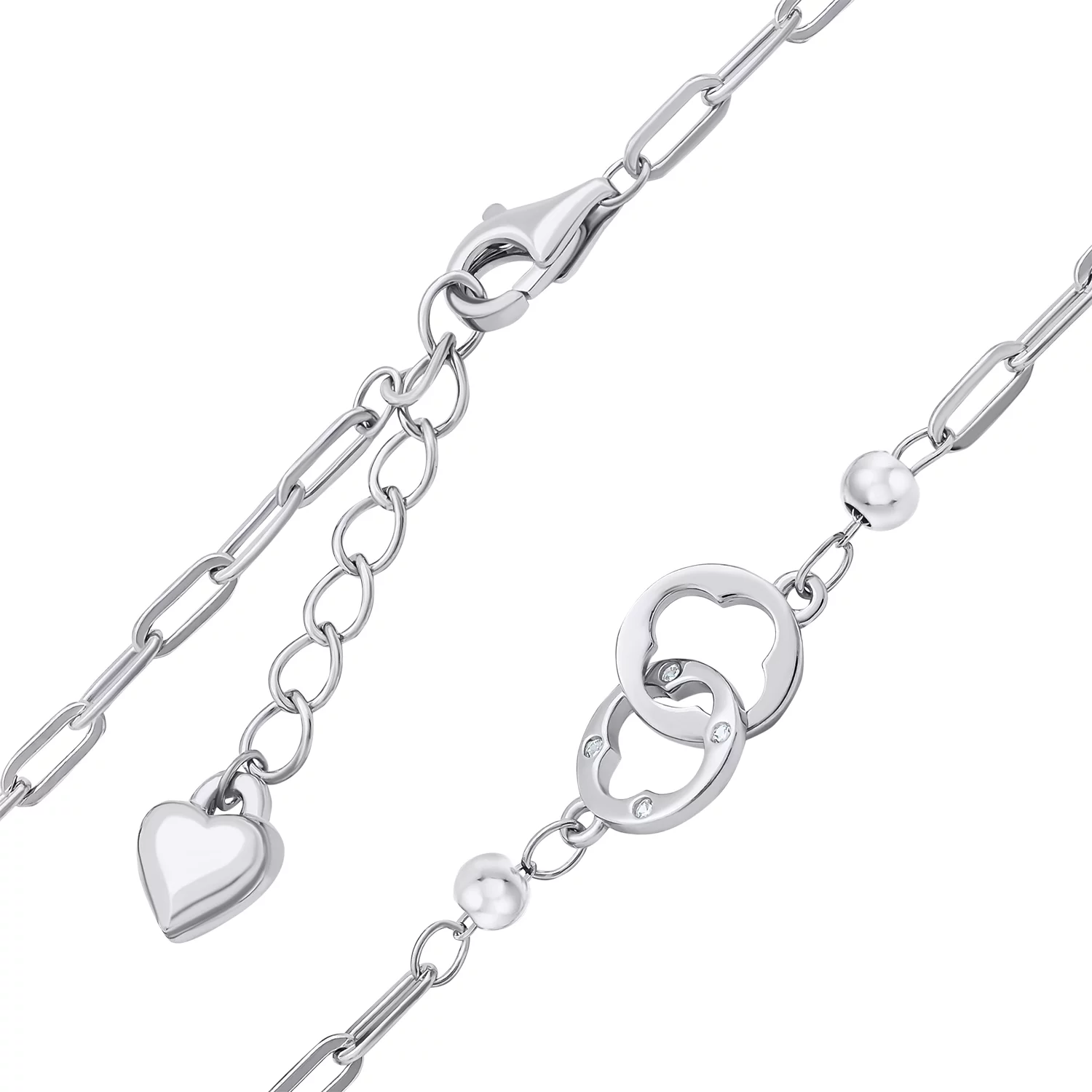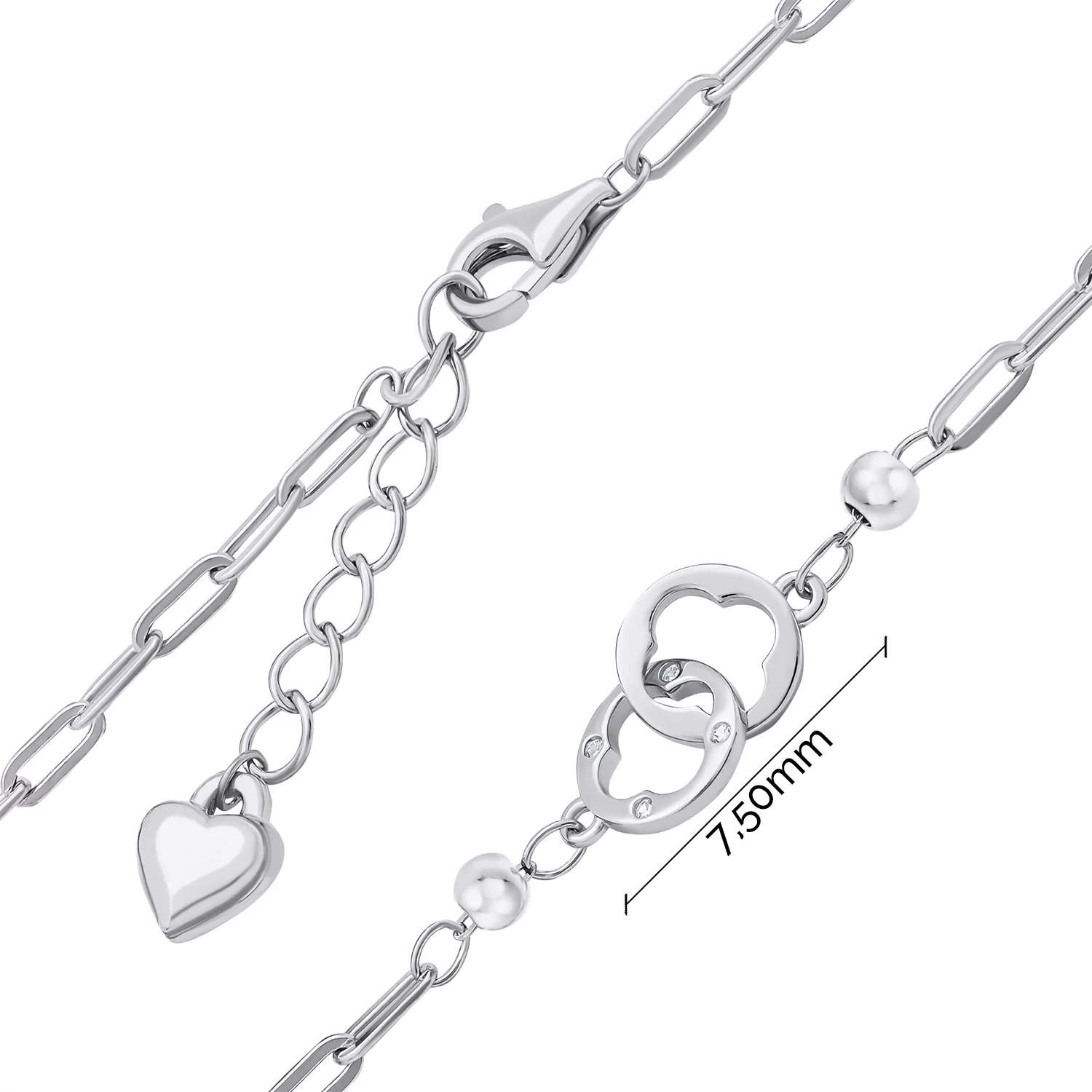 Браслет "Клевер" серебряный с эмалью и фианитами якорное плетение - 1618366