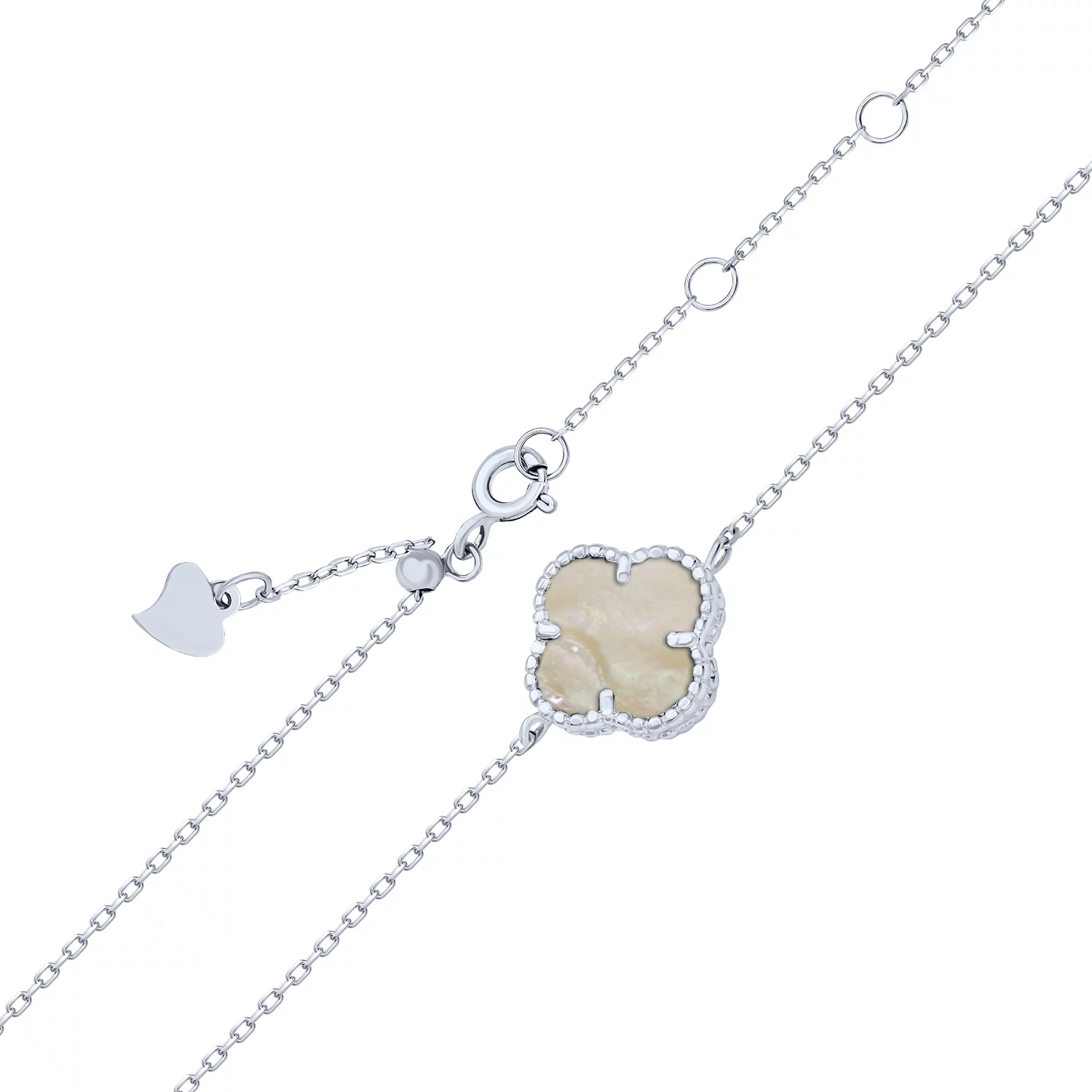Браслет "Клевер" серебряный с эмалью и фианитами якорное плетение - 1618366