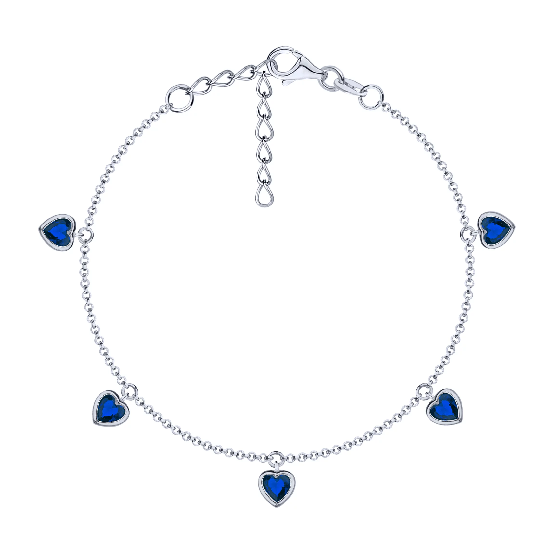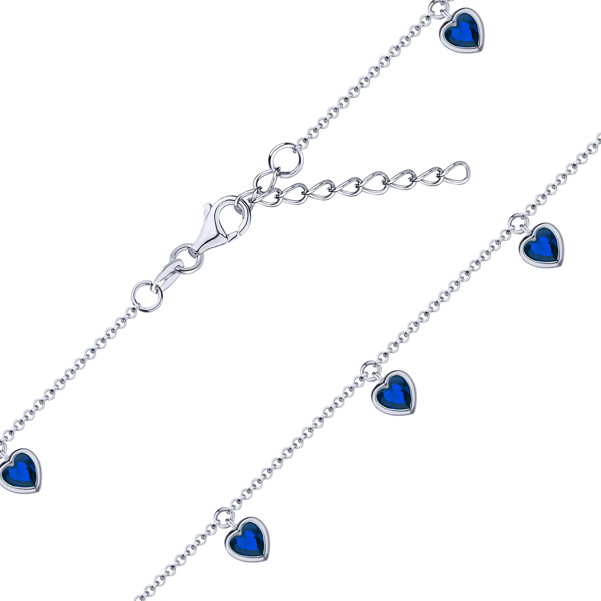 Серебряный браслет с подвесами "Сердечки" с фианитами плетение якорь - 1612545