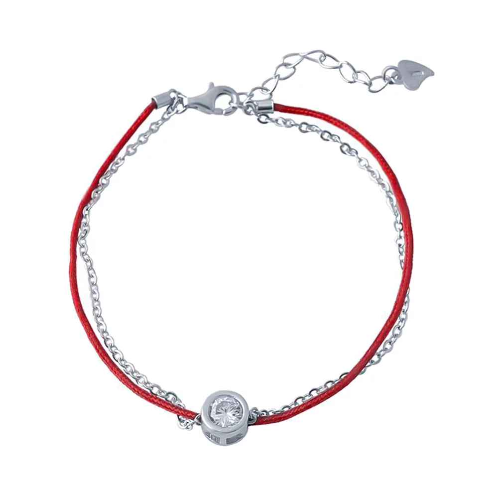 Браслет двойной из серебра с красной нитью и фианитом плетение Якорь - 1469482
