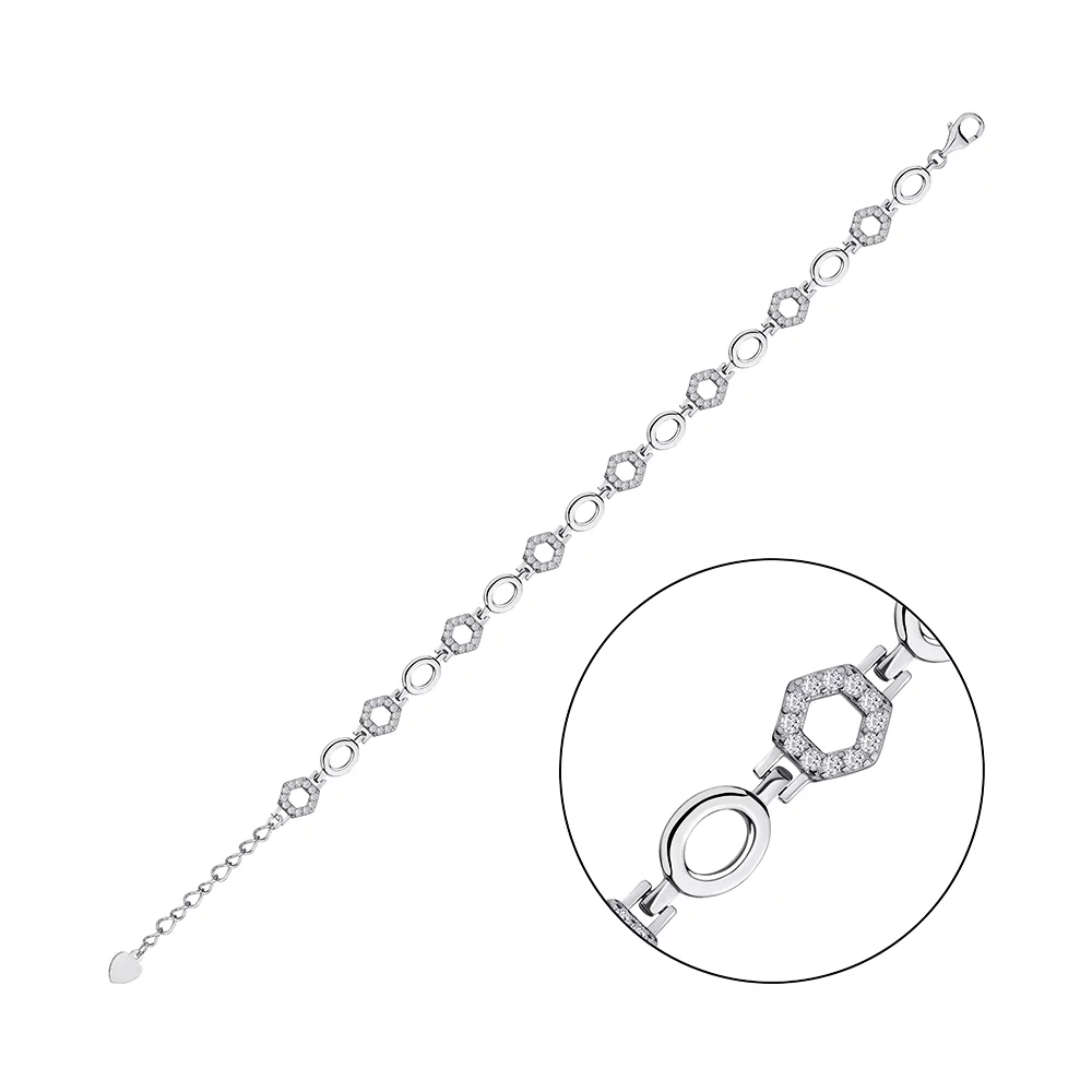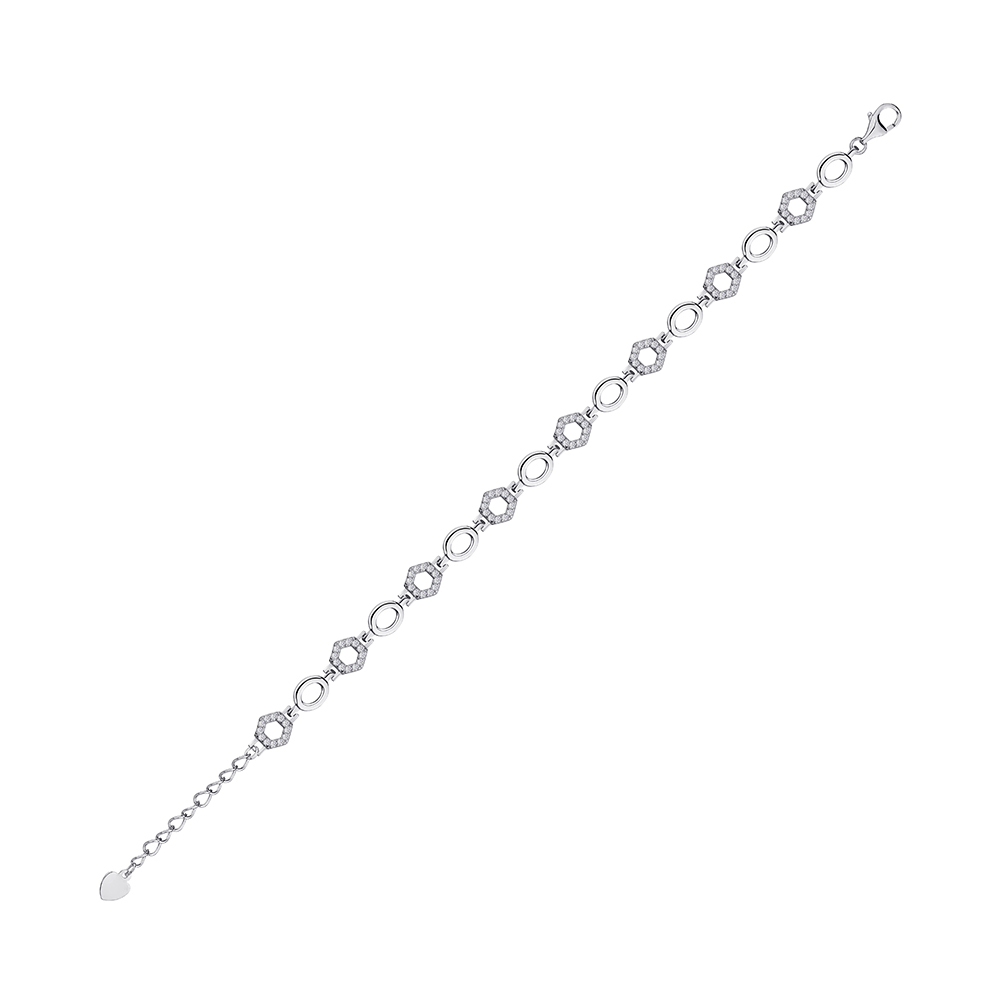 Браслет из серебра с фианитом Фантазийное плетение - 1294708
