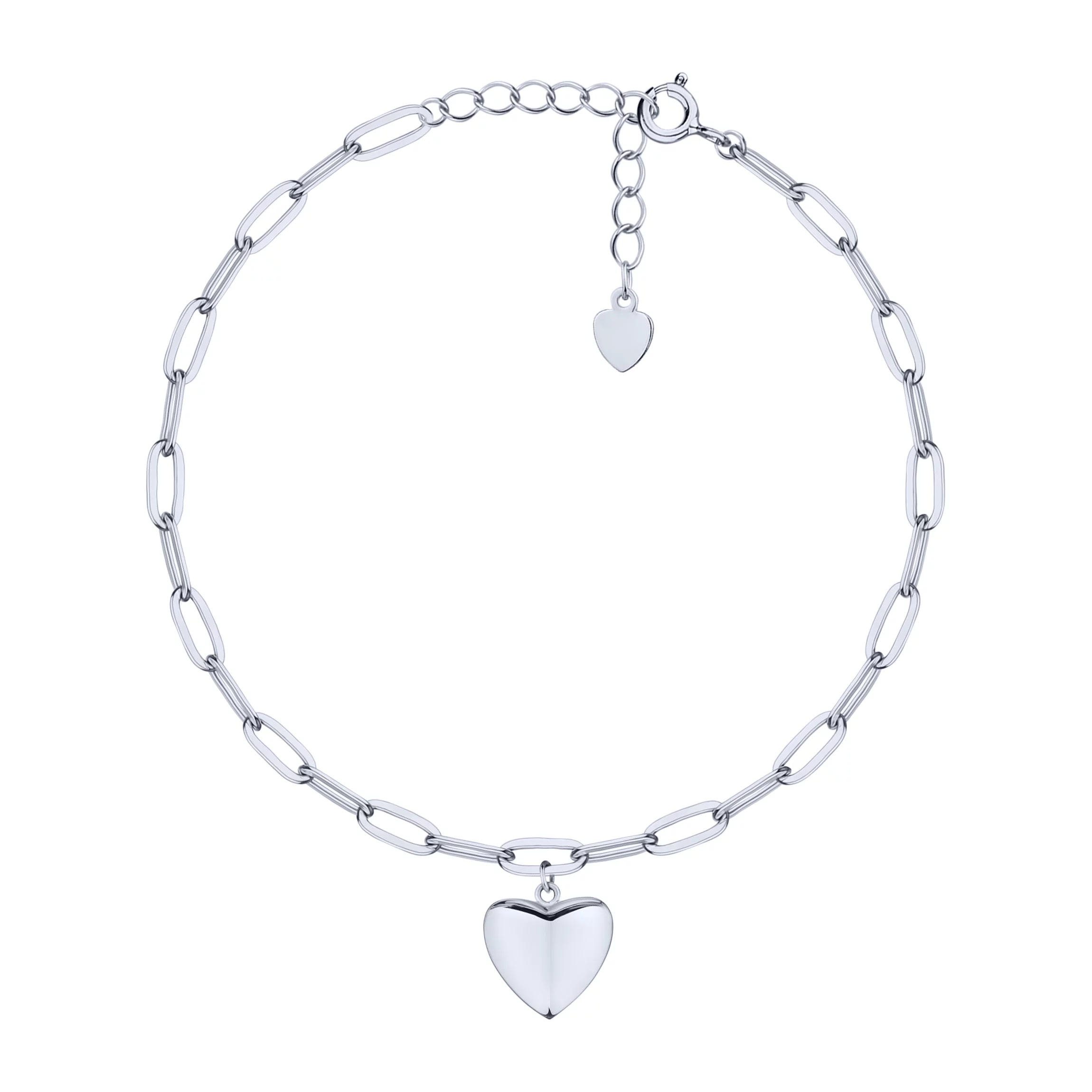 Серебряный браслет с подвесами "Сердечки" с фианитами плетение якорь - 1612545