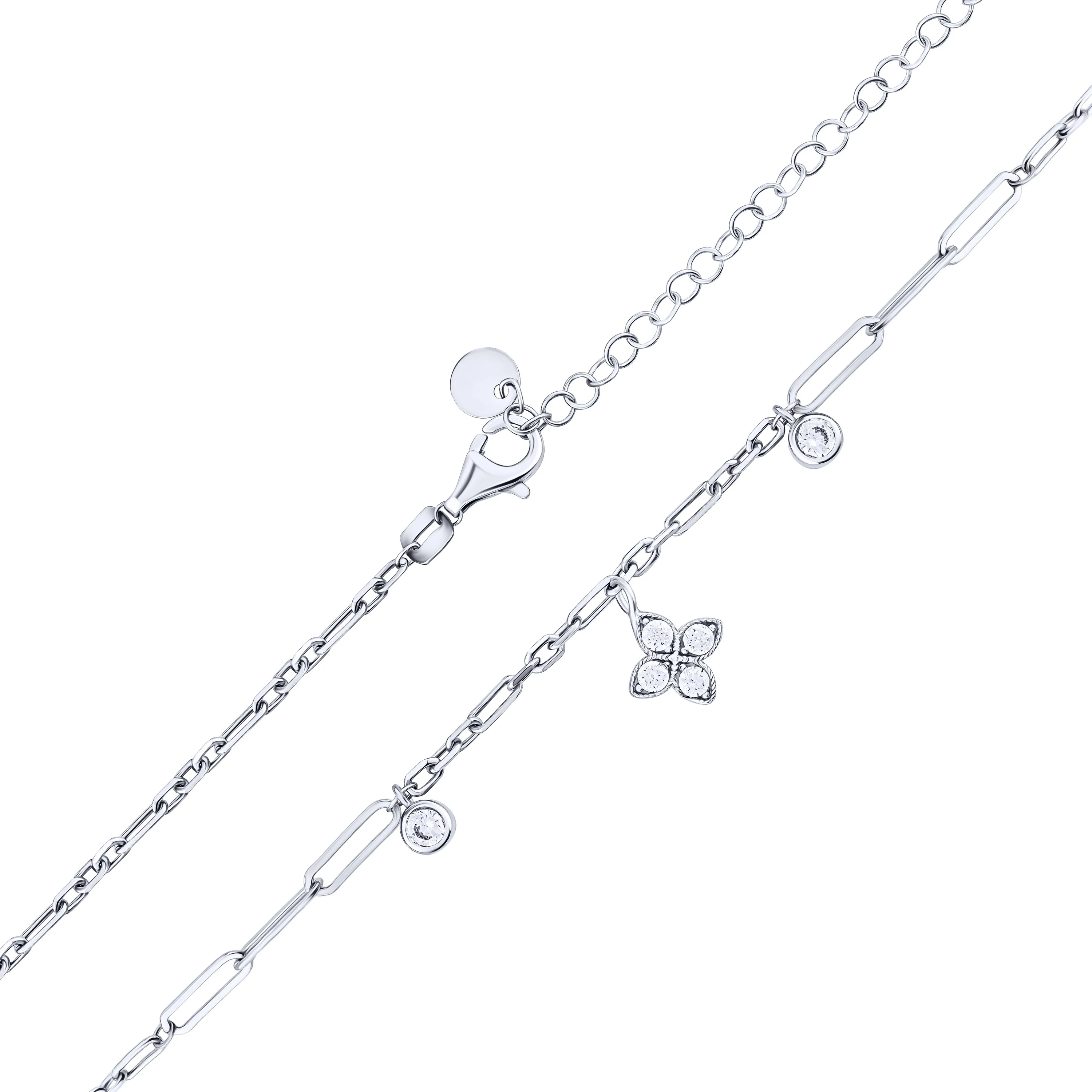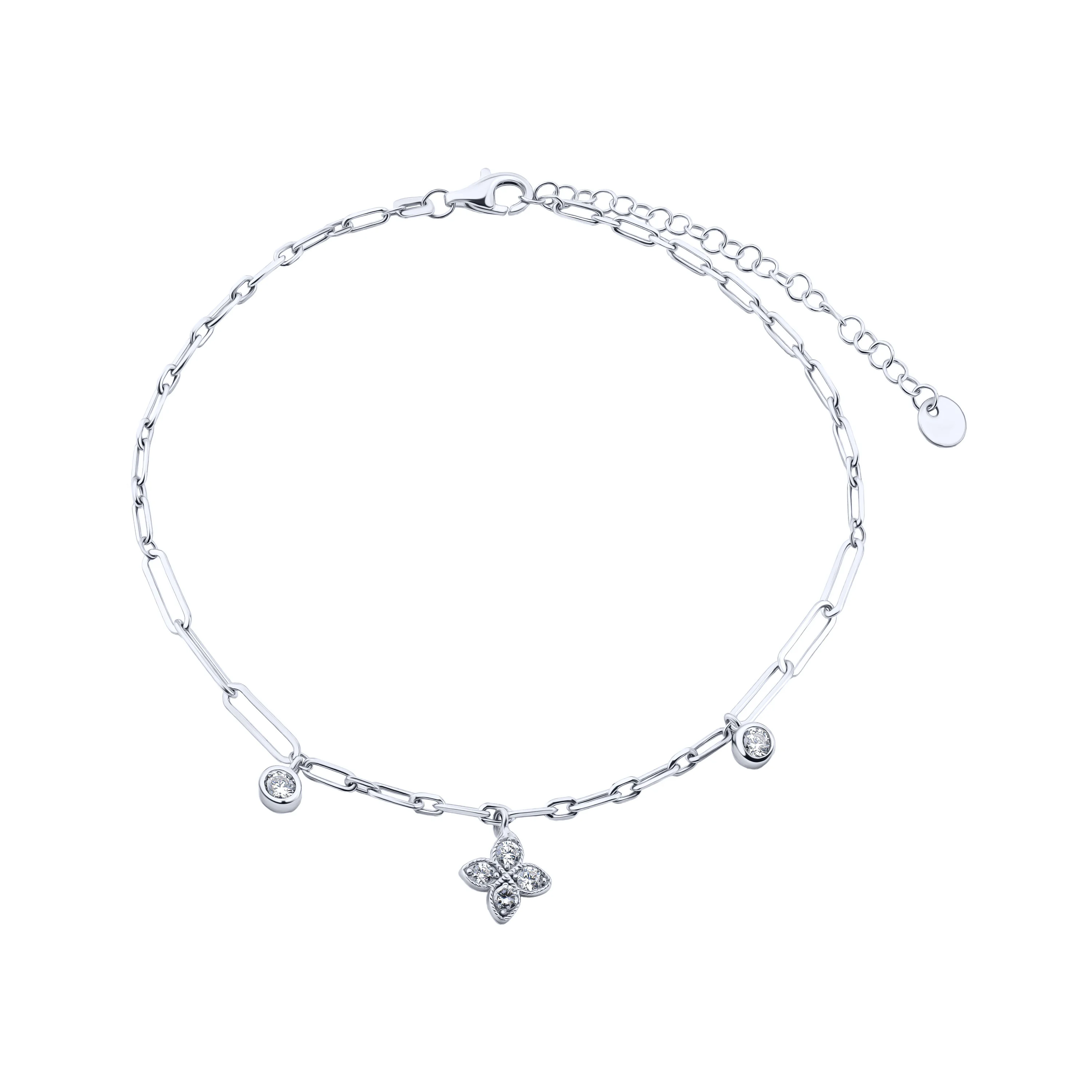 Браслет из серебра "Цветок" с подвесами и фианитами плетение якорь - 2153332