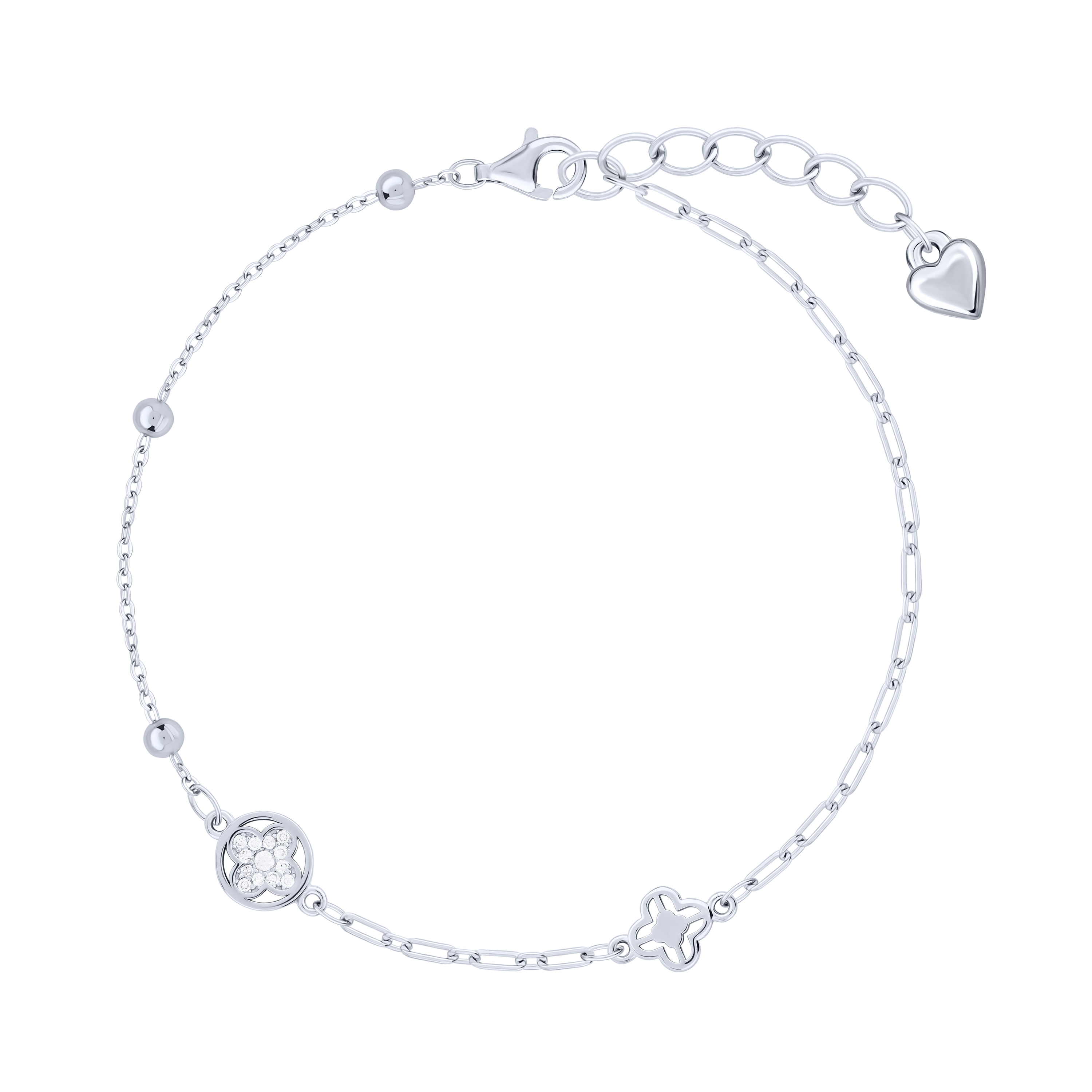 Браслет из серебра "Цветы" с фианитами плетение якорь - 2153428