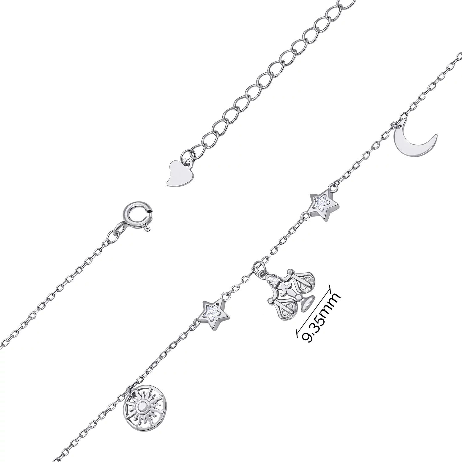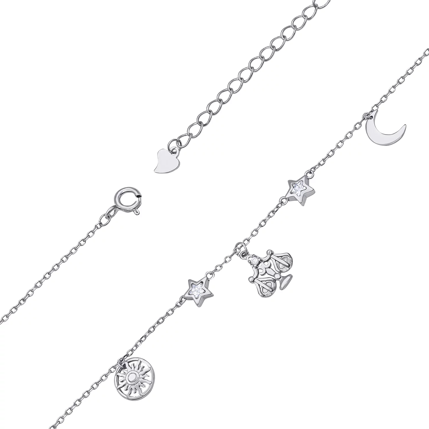 Стильный двойной серебряный браслет "Звезда" с якорным плетением и фианитами - 1939932
