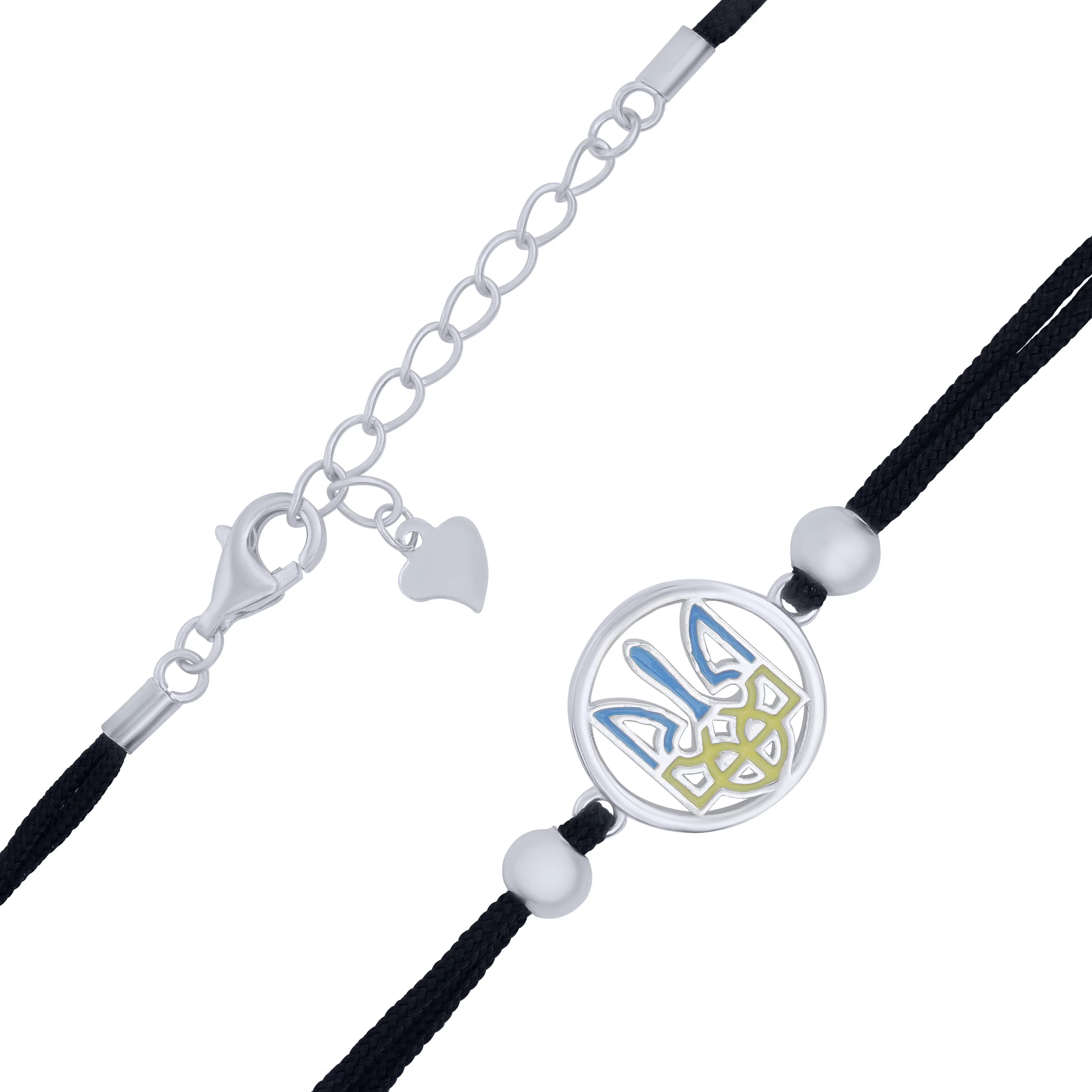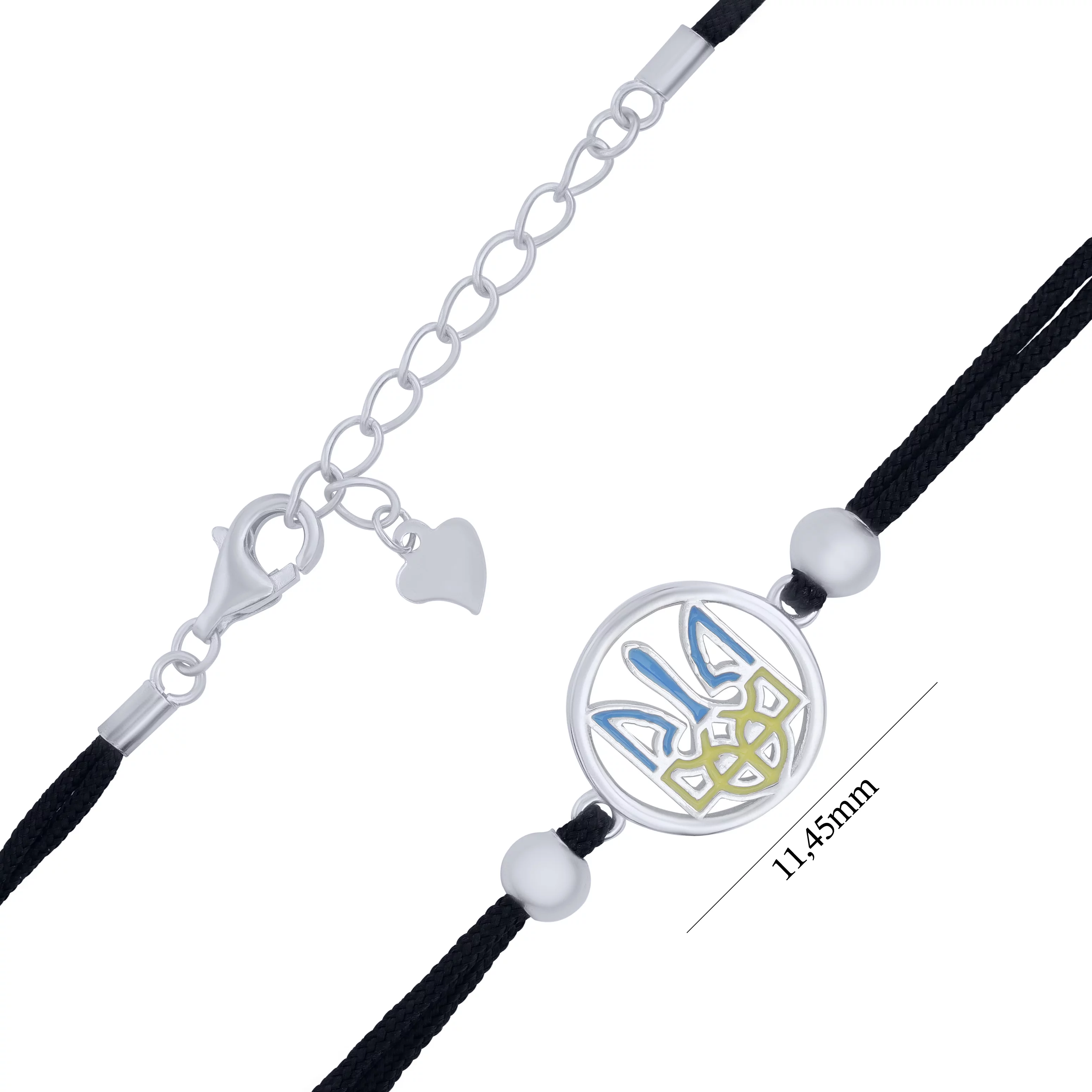 Шелковый браслет со вставкой "Тризуб - Герб Украины" из серебра - 1760273
