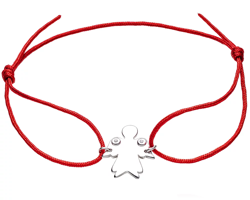 Браслет из шелка с серебряной вставкой и фианитом Ангел - 1428528