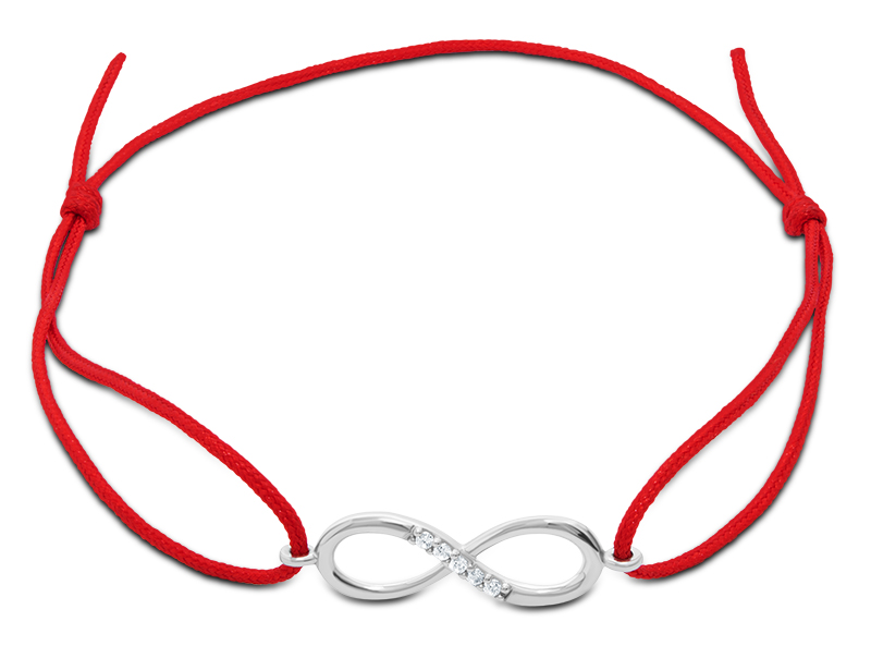 Браслет из шелка с серебряной вставкой и фианитом Бесконечность - 1428525