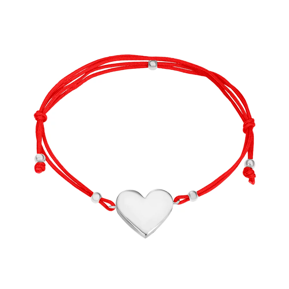 Браслет из шелковой нити с подвеской из белого золота Сердце - 1405842