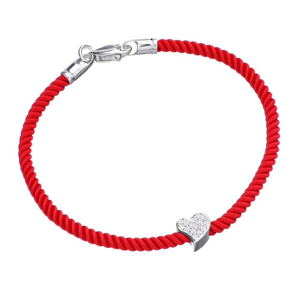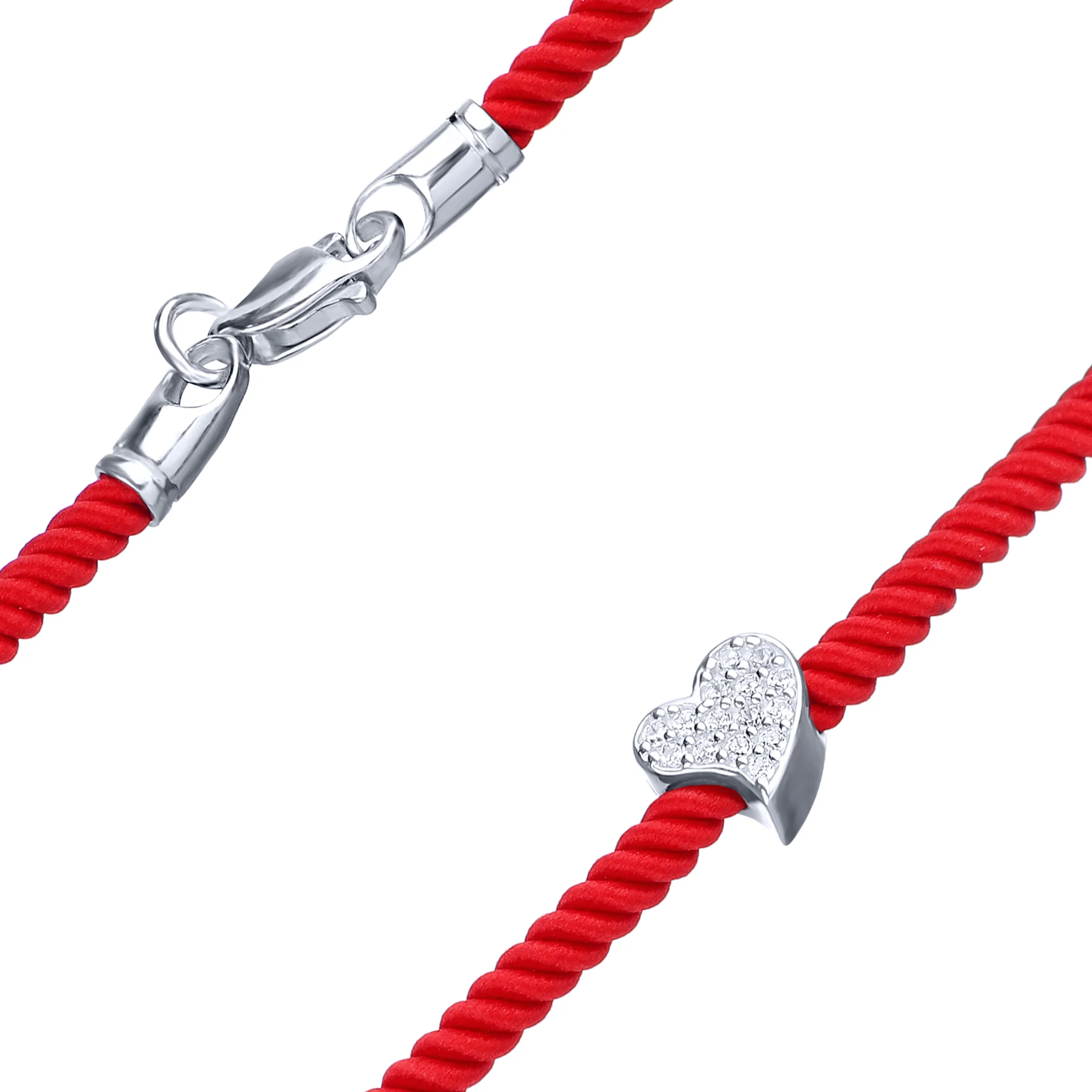 Браслет красная нить с серебряным замком "Сердце" - 466361