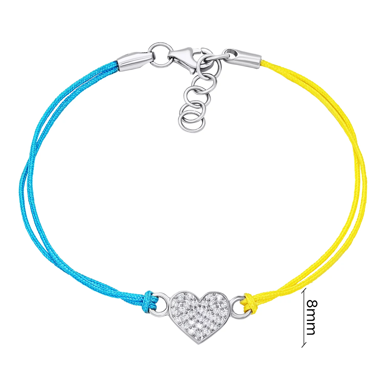 Шелковый браслет с фианитом "Украина в сердце" с серебряными вставками - 1706423