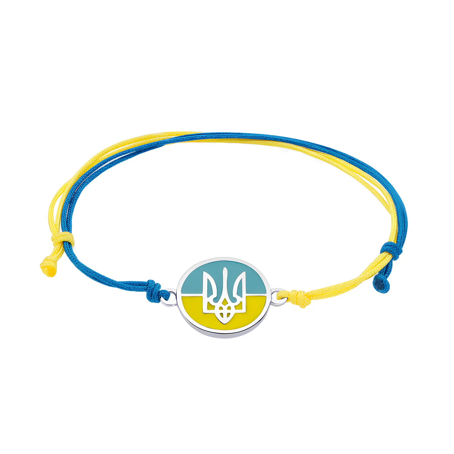 Браслет из сине-желтой шелковой нити с серебром и эмалью тризуб-"Герб Украины" - 1514631