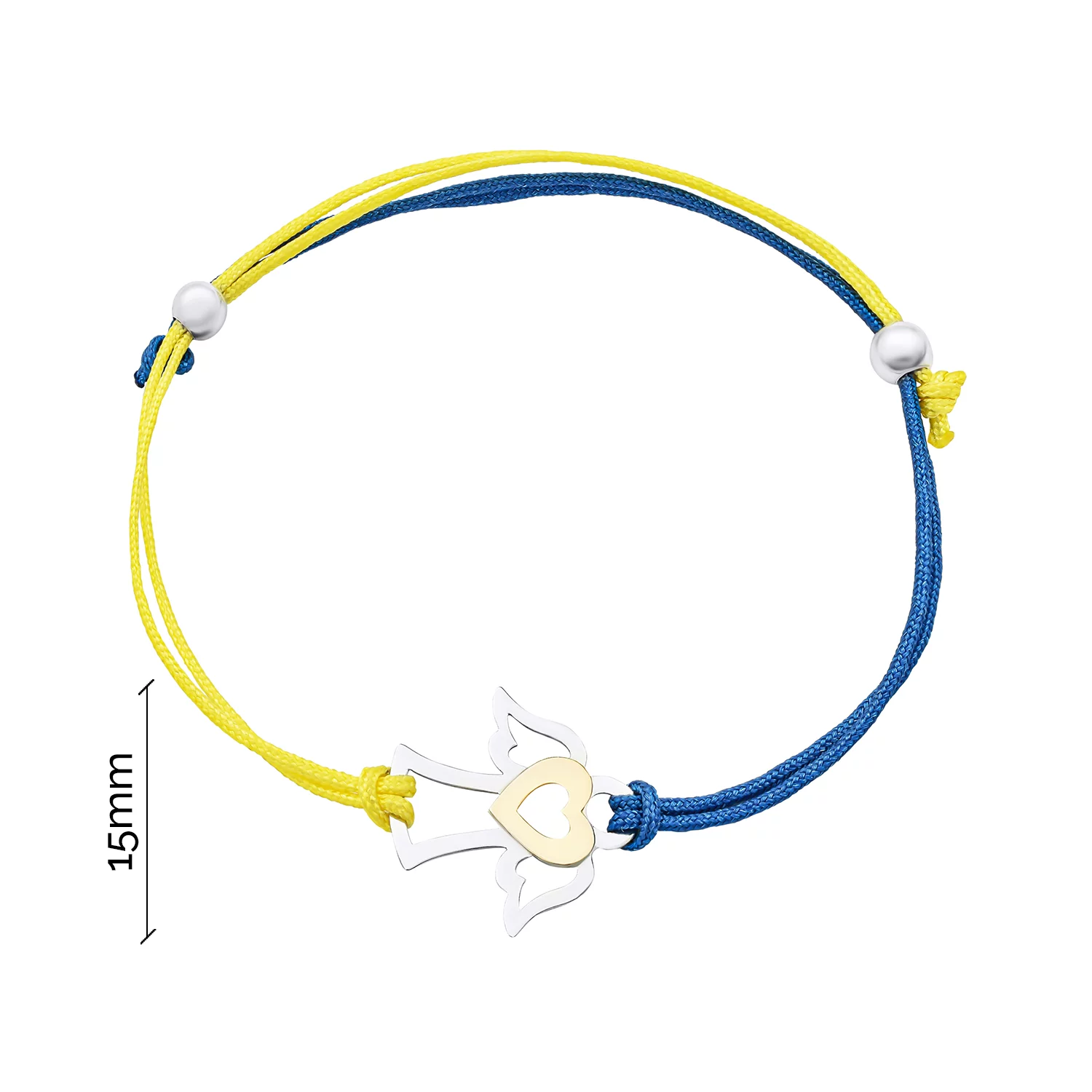 Браслет из сине-желтого шелка с вставкой из серебра "Украинское Сердце" с фианитами - 1549772
