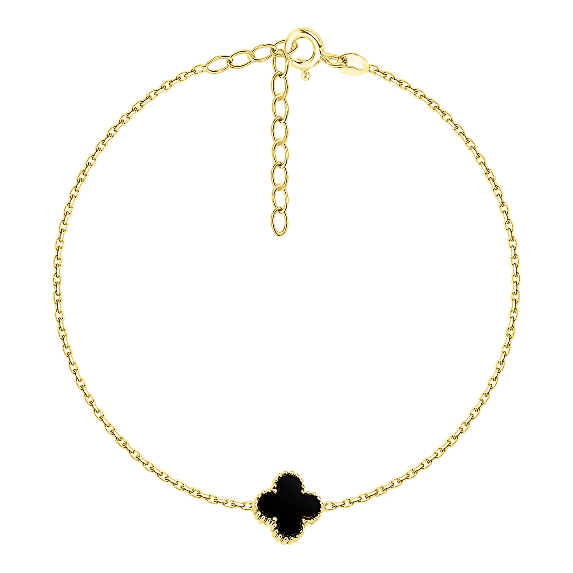 Браслет "Клевер" из красного золота с ониксом в якорном плетении - 1747727