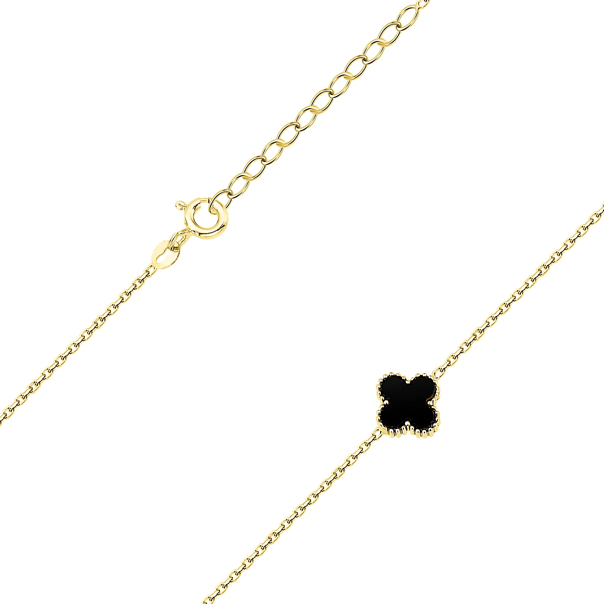 Браслет из белого золота "Клевер" с ониксом плетение якорное - 1512010