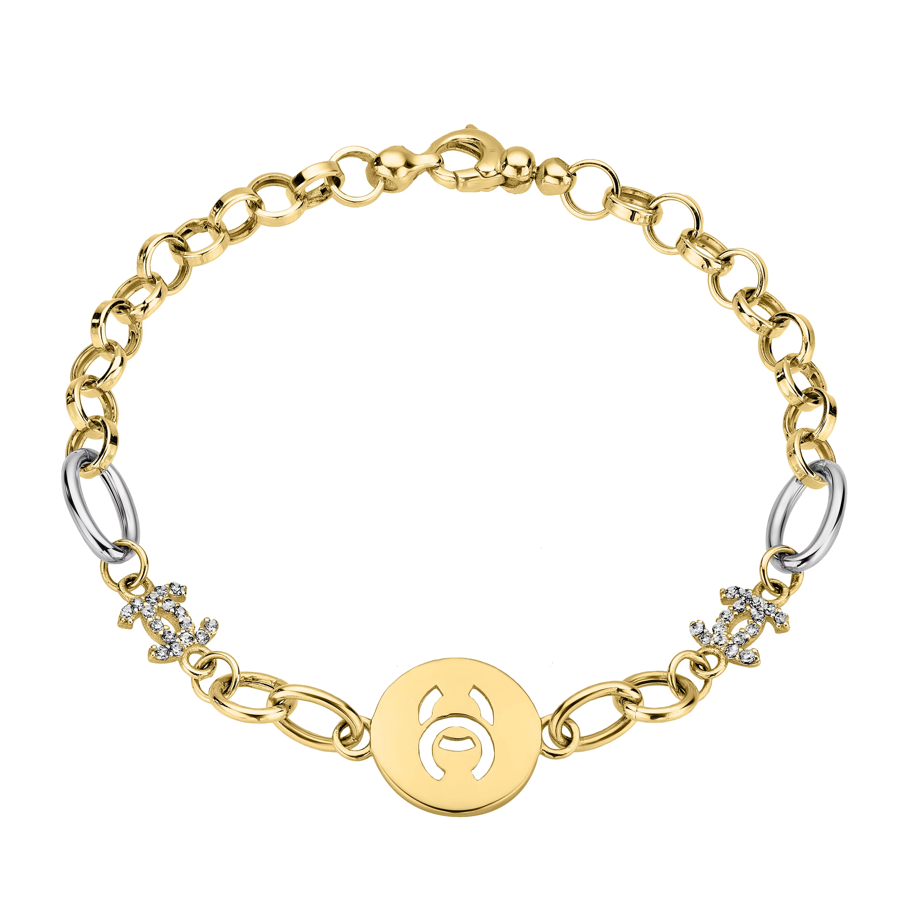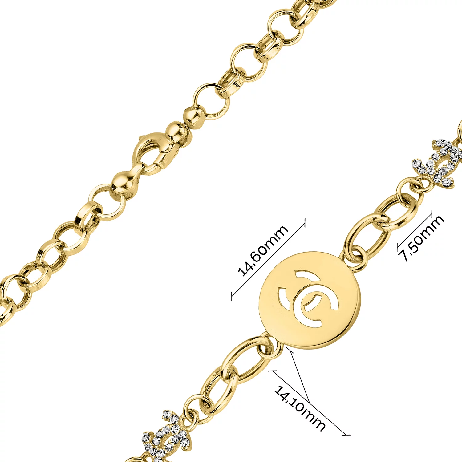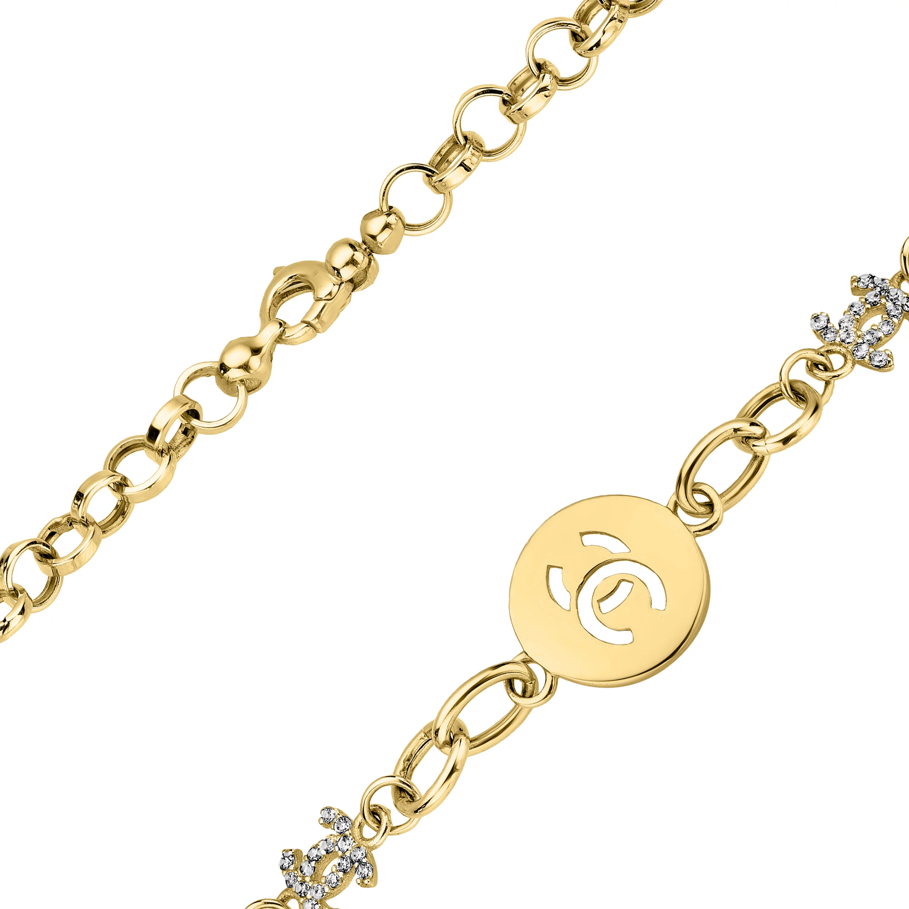 Браслет из лимонного золота с фианитом и подвесами плетение шопард - 960813