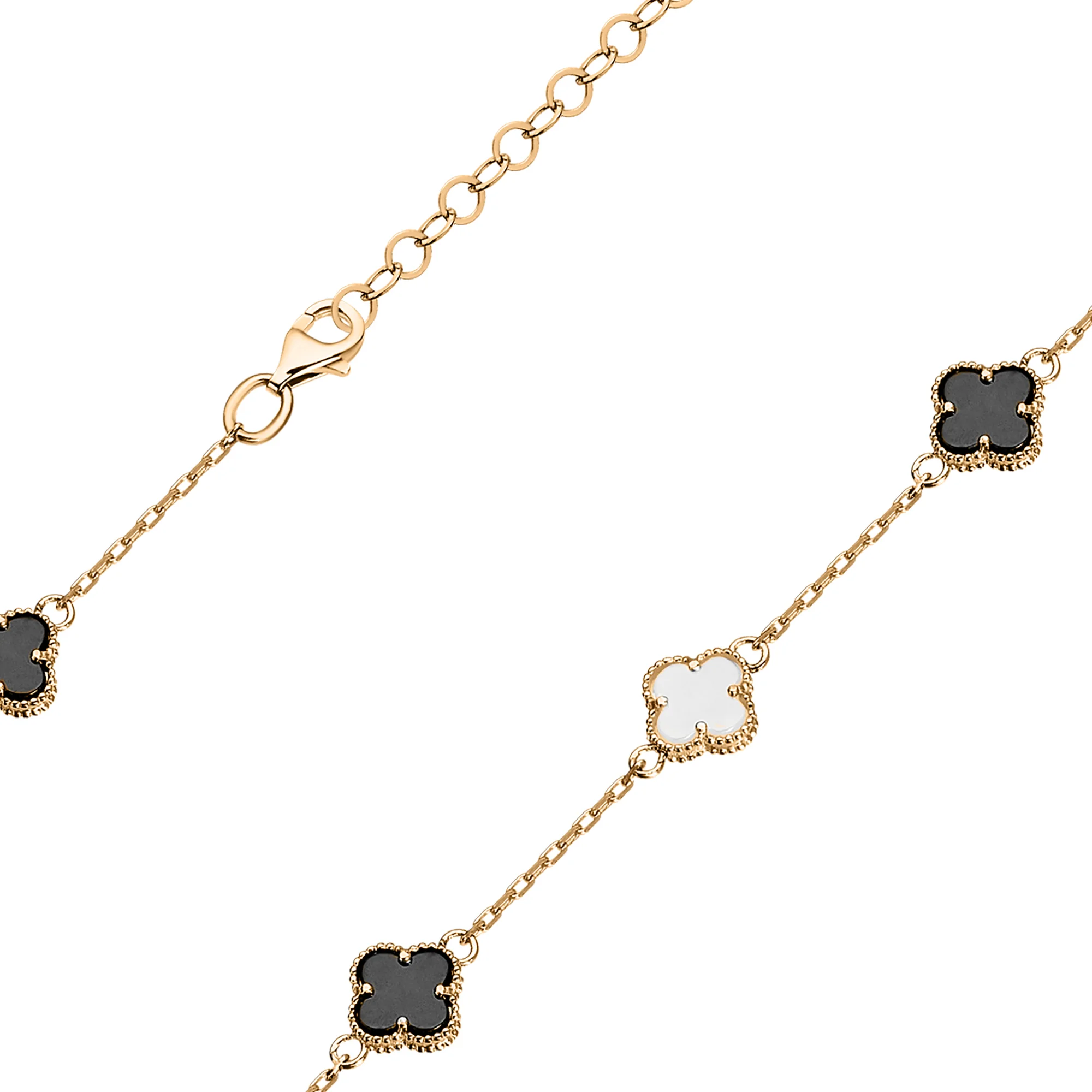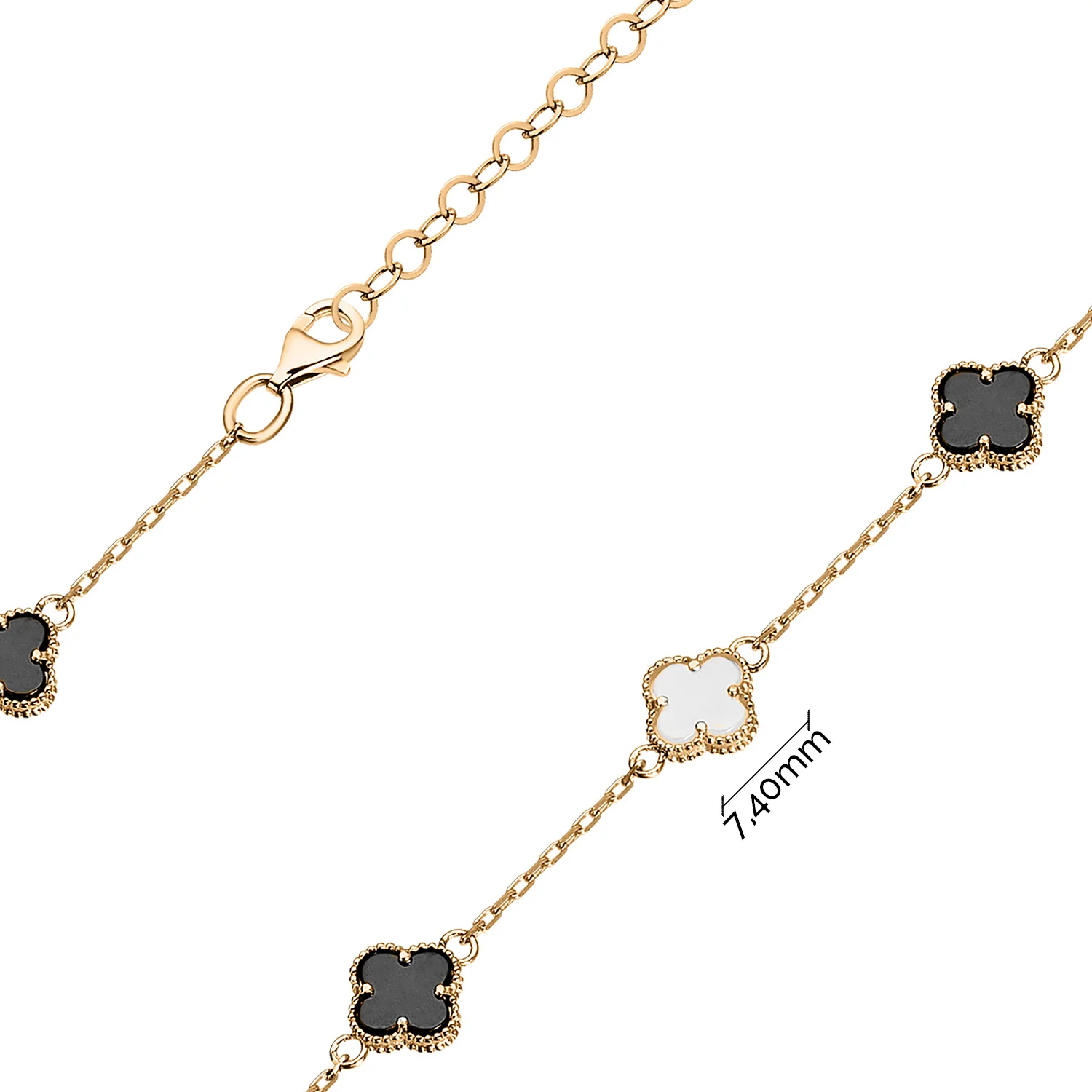 Браслет "Клевер" из красного золота с ониксом и перламутром в якорном плетении - 2004590