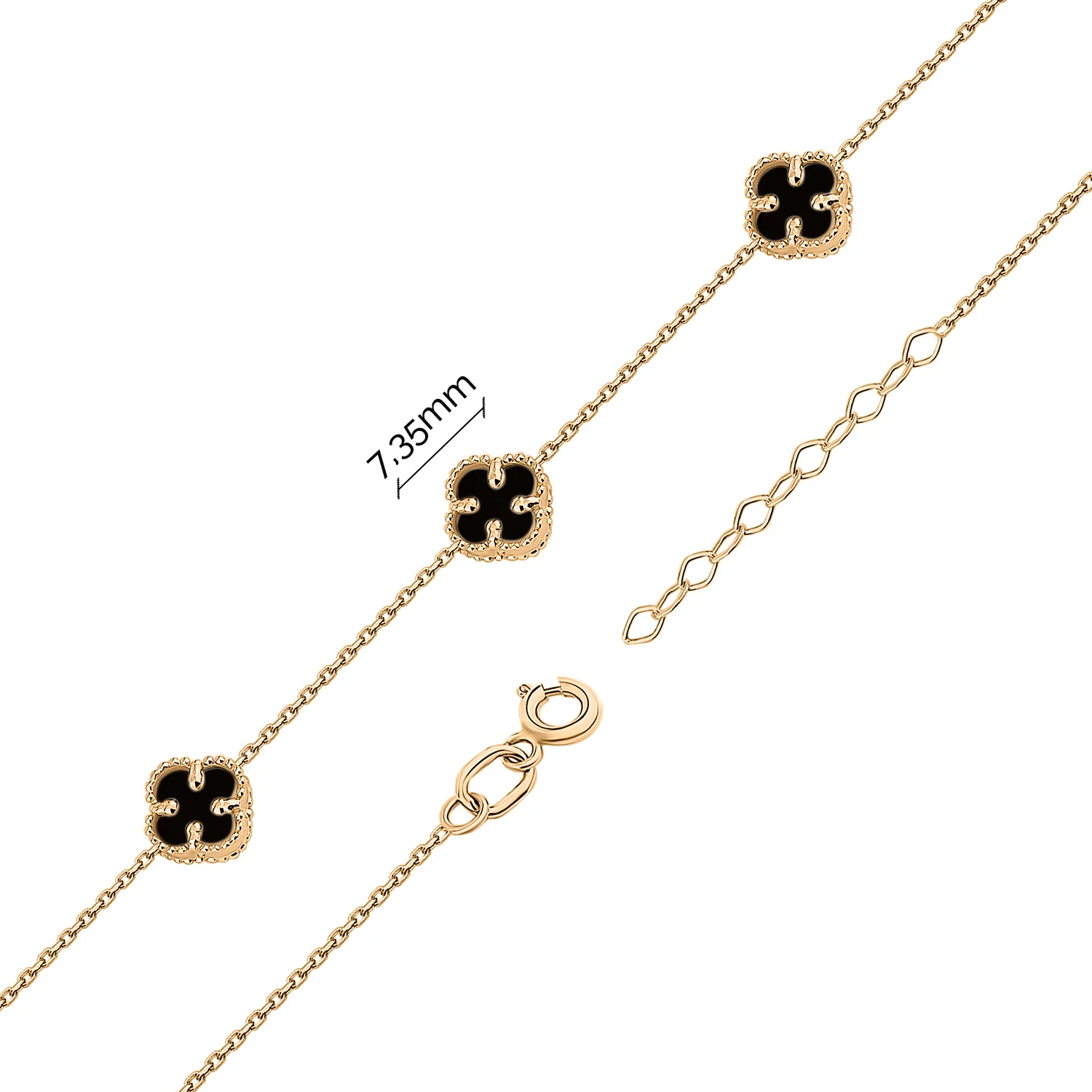 Браслет из красного золота "Клевер" с ониксом якорное плетение - 1824437
