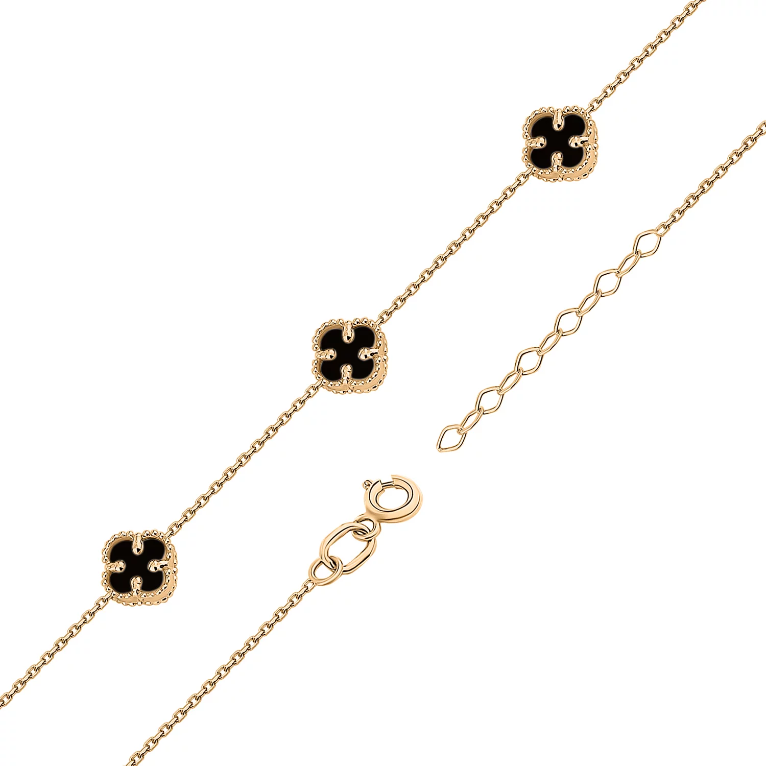 Браслет "Клевер" из красного золота с ониксом в якорном плетении - 1747727
