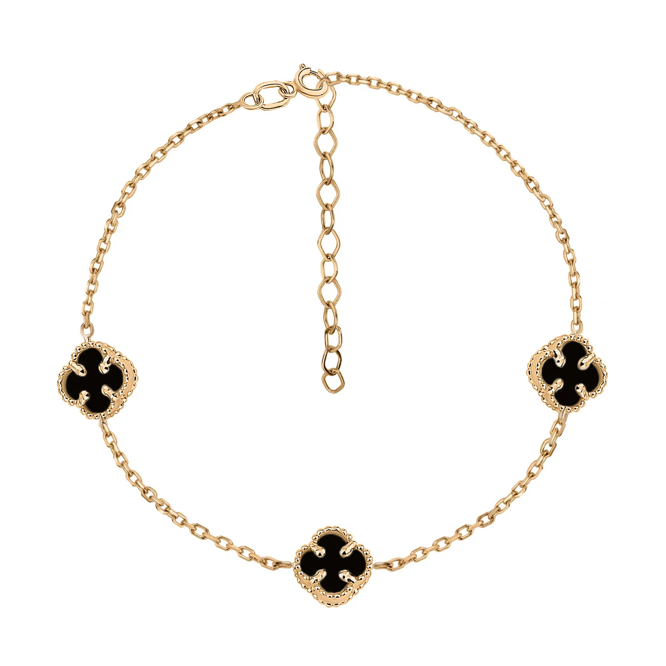 Элегантный браслет "Клевер" из красного золота с ониксом и якорным плетением - 1858710