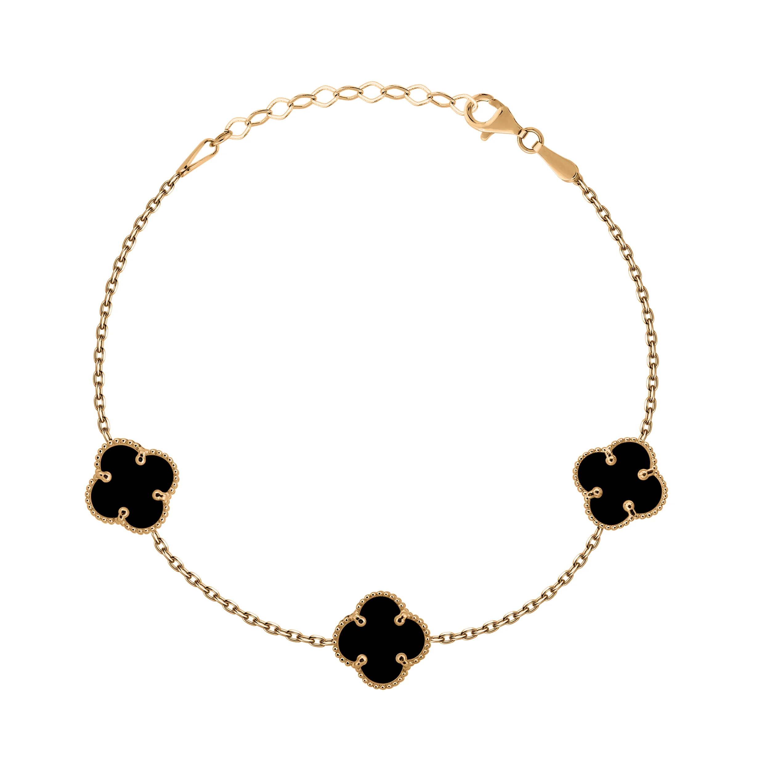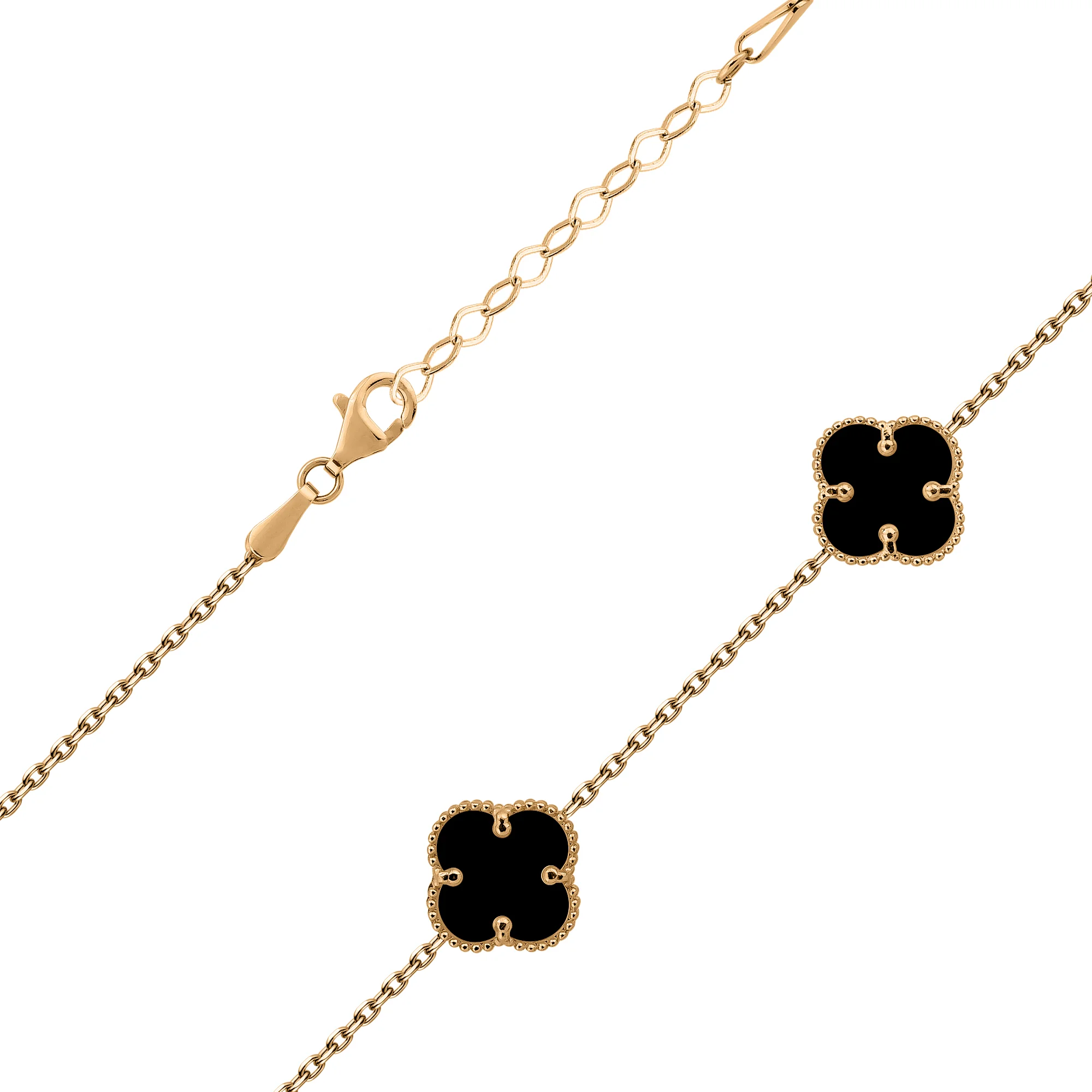 Браслет "Клевер" из красного золота с ониксом якорное плетение - 2070167