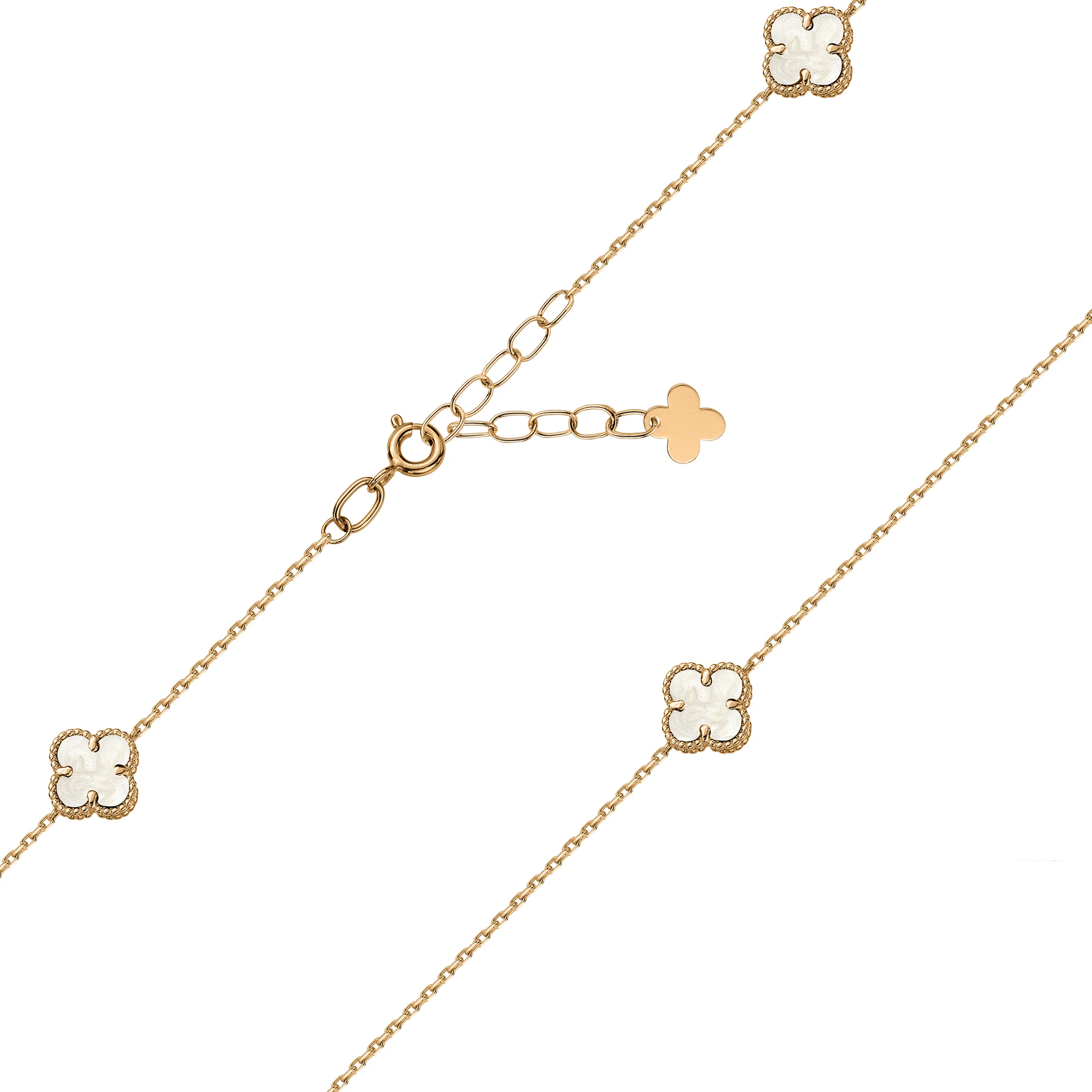 Браслет "Клевер" с перламутром в красном золоте и якорном плетении - 2167205