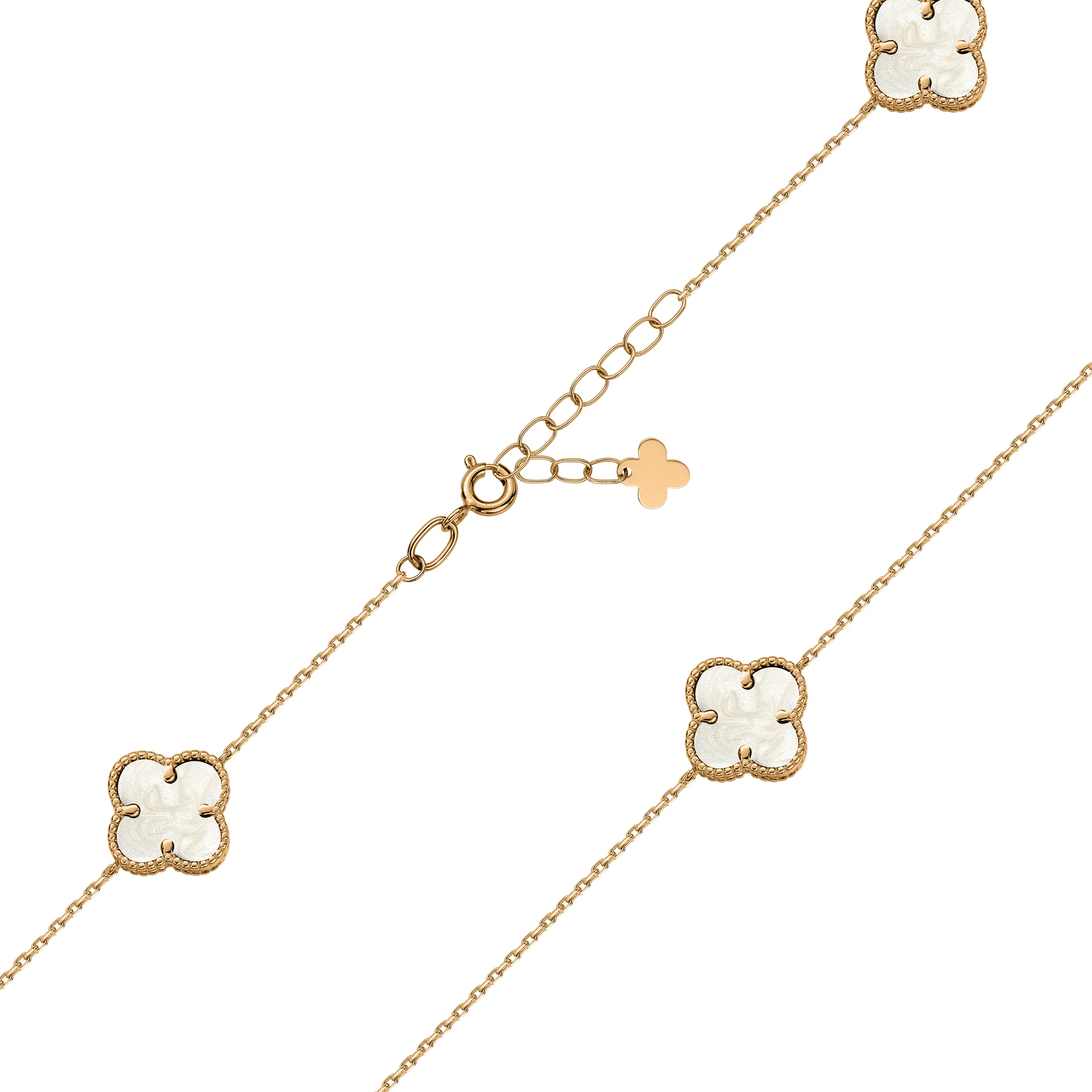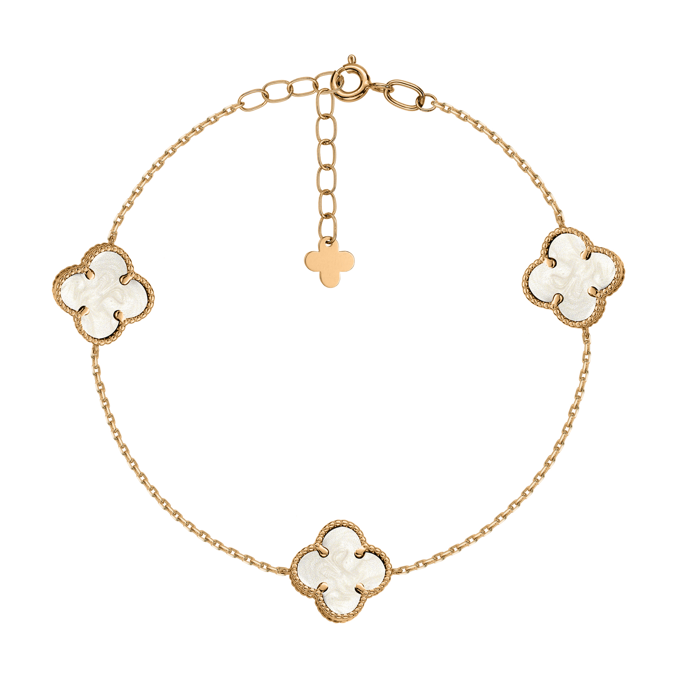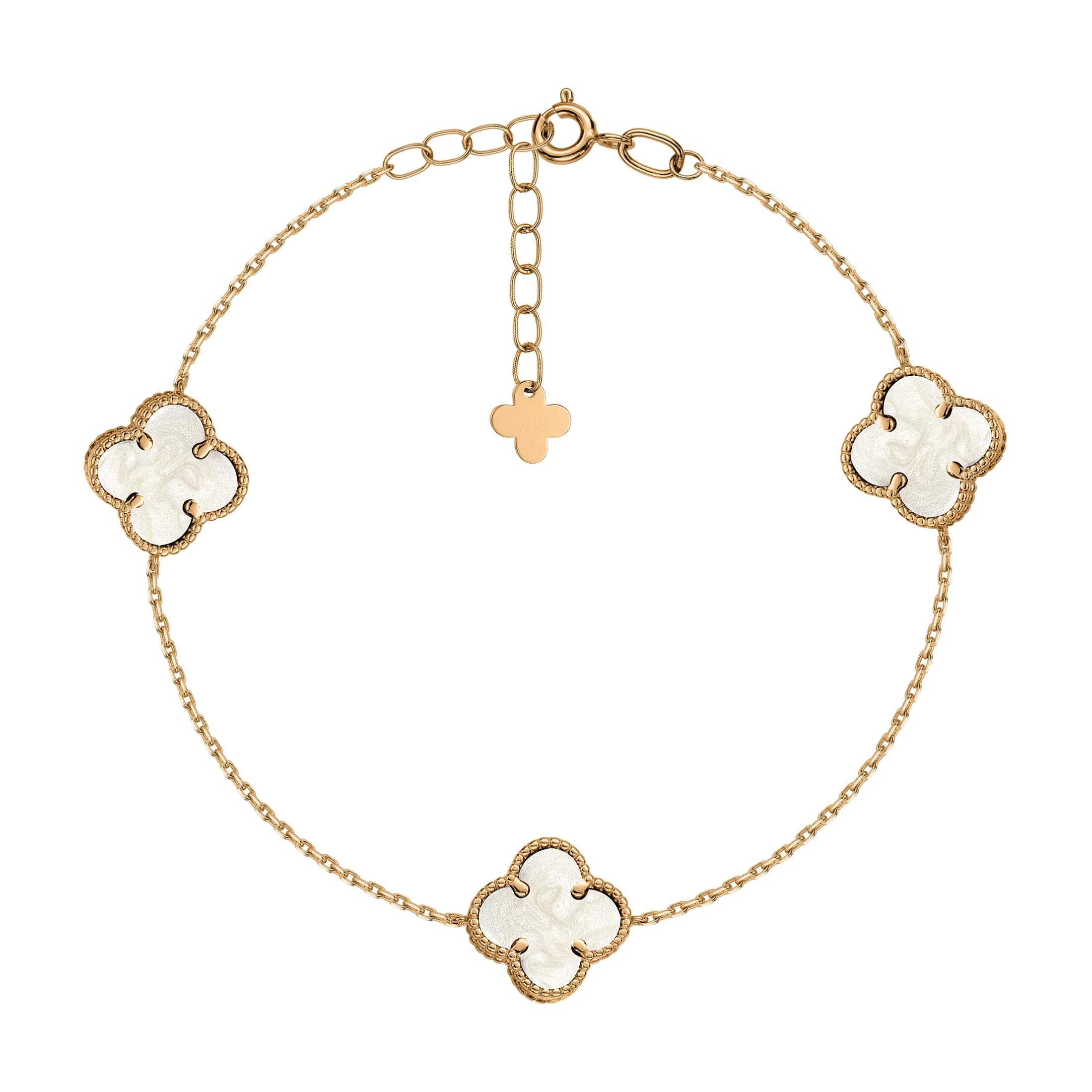 Браслет "Клевер" в красном золоте и якорном плетении с перламутром - 2167204
