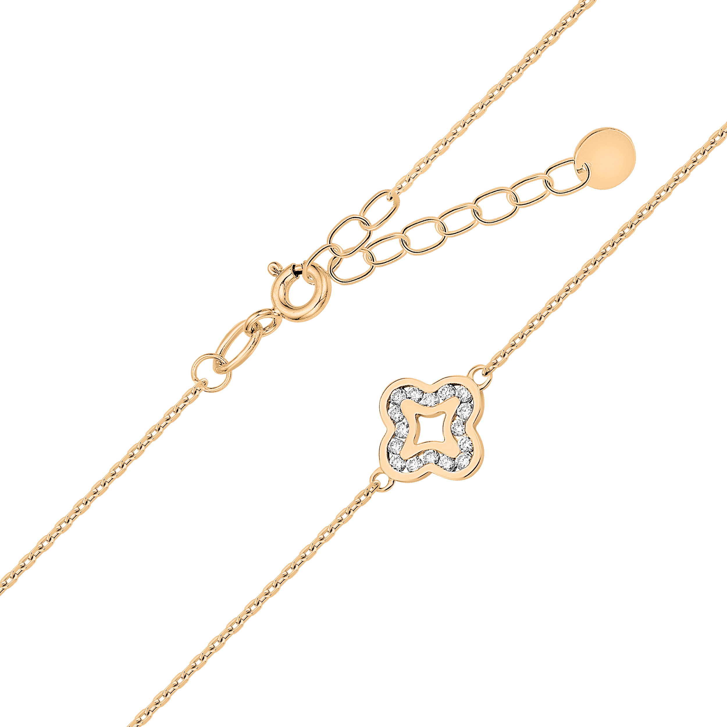 Браслет "Клевер" в красном золоте с бриллиантами в якорном плетении - 2142386