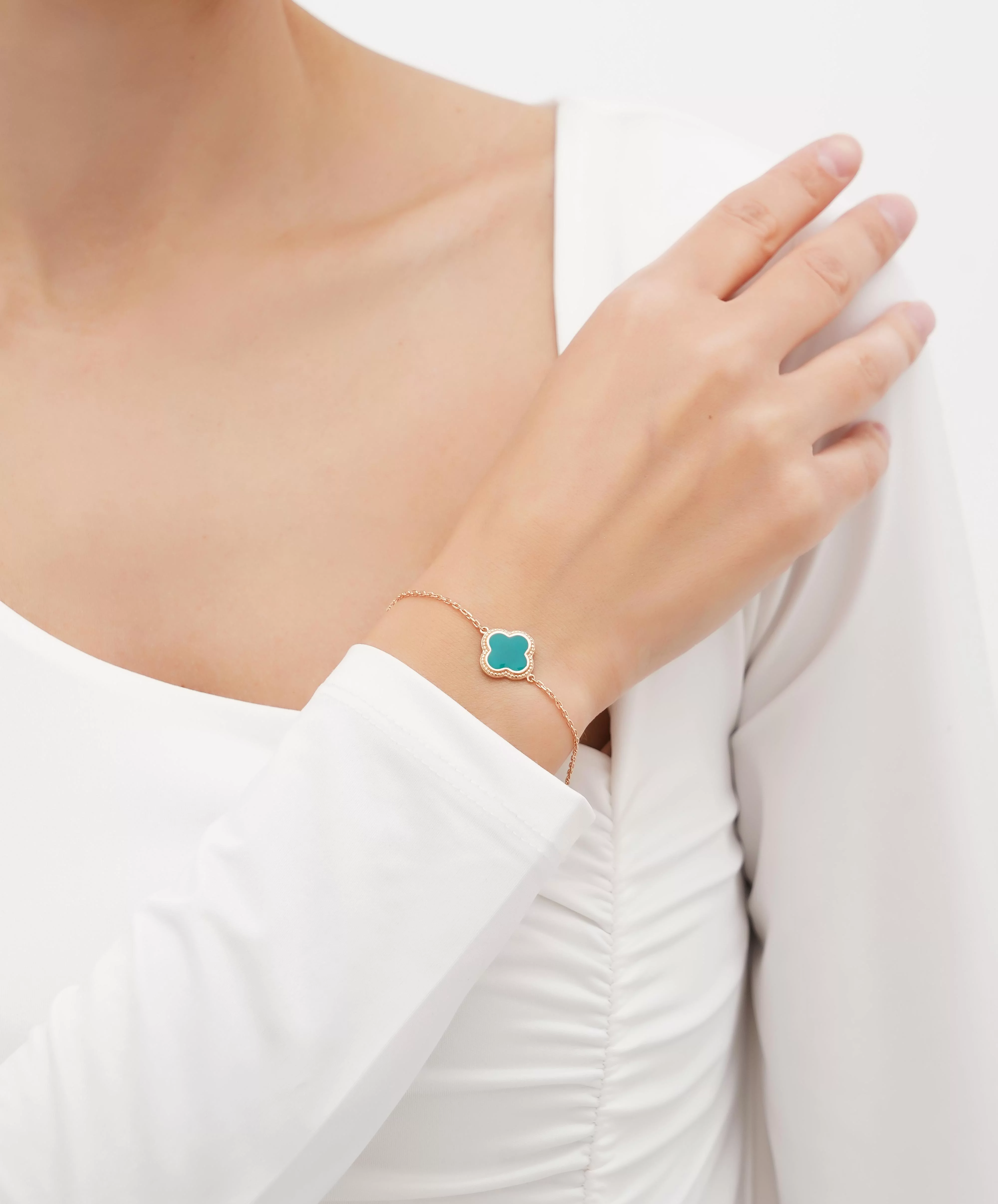 Браслет "Клевер" в якорном плетении с эмалью из красного золота - 1657943