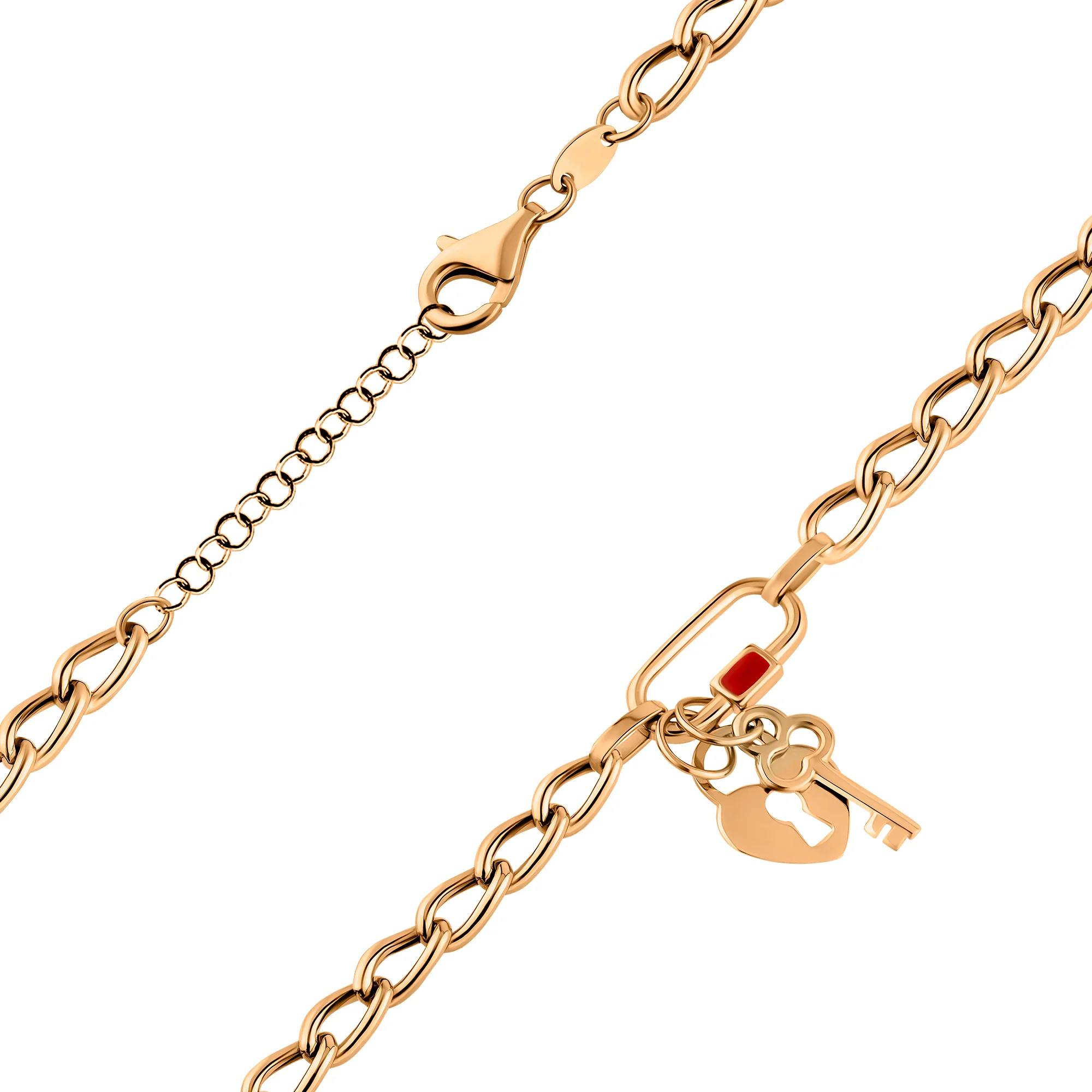 Браслет "Ключик" с подвесом из красного золота в двойном плетении - 1856609