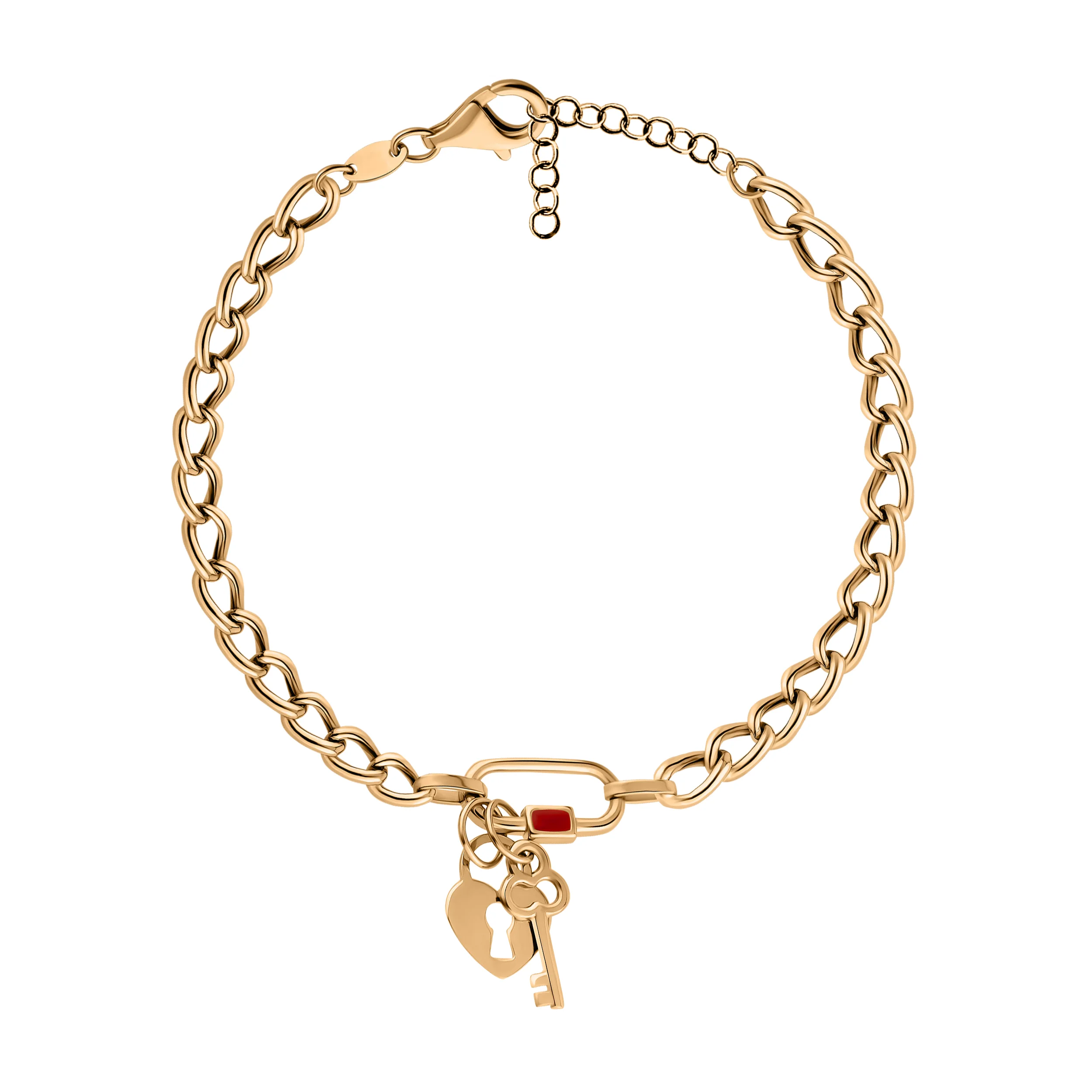 Браслет из красного золота с подвеской "Ключик от сердца" с двойным плетением - 1641279