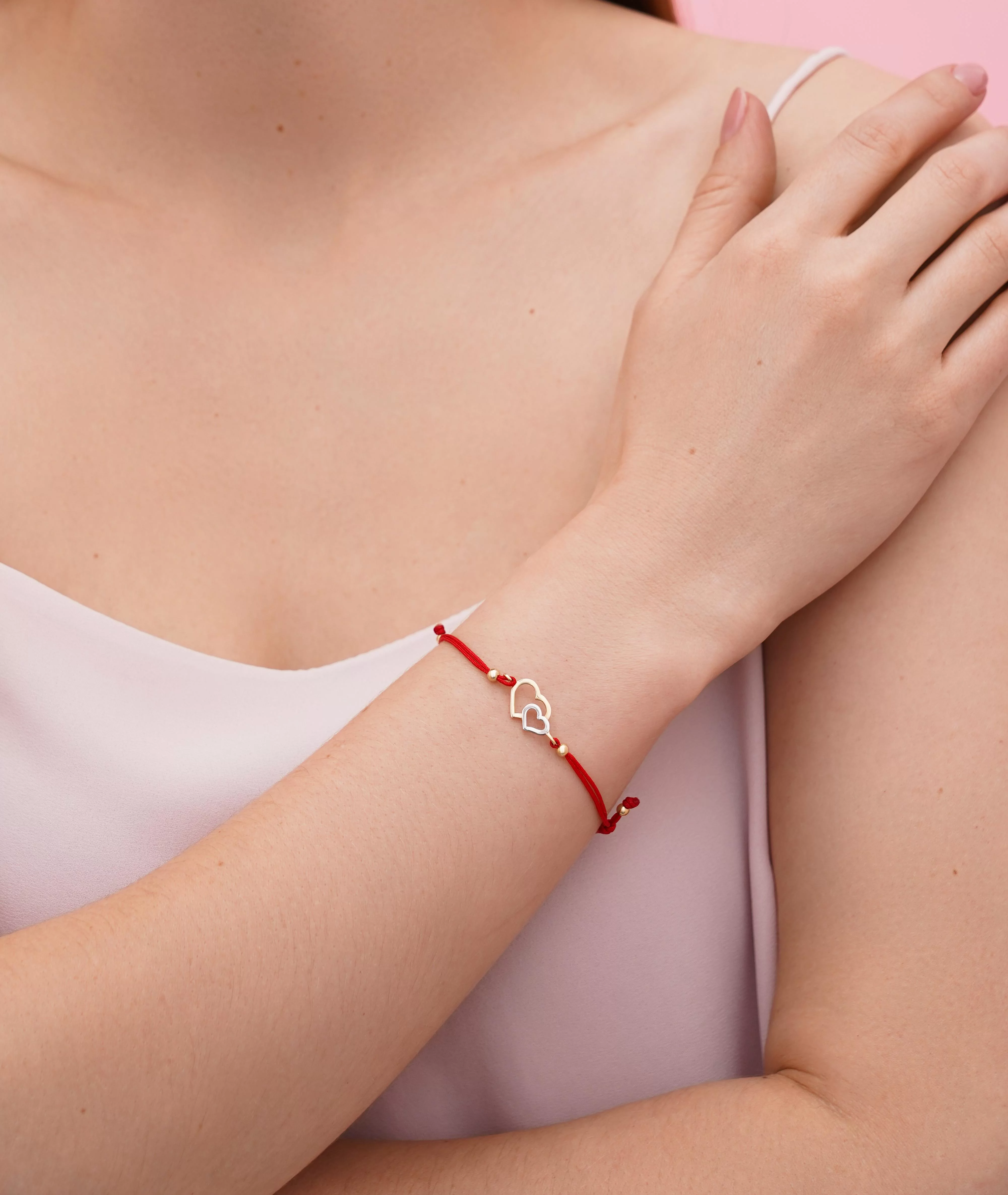Шелковый браслет со вставкой из красного золота "Украина в сердце" - 1271761