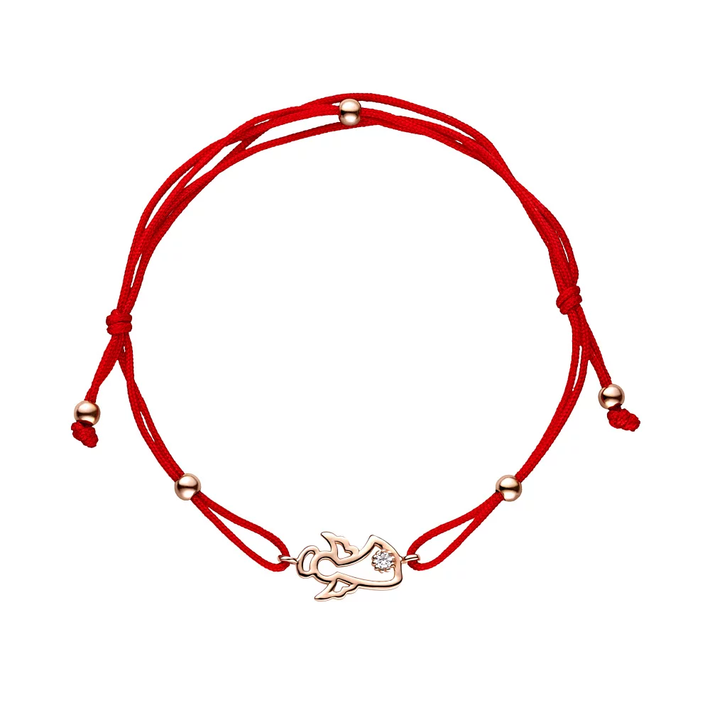 Браслет красный шелковый с золотыми вставками и фианитом - 1405752