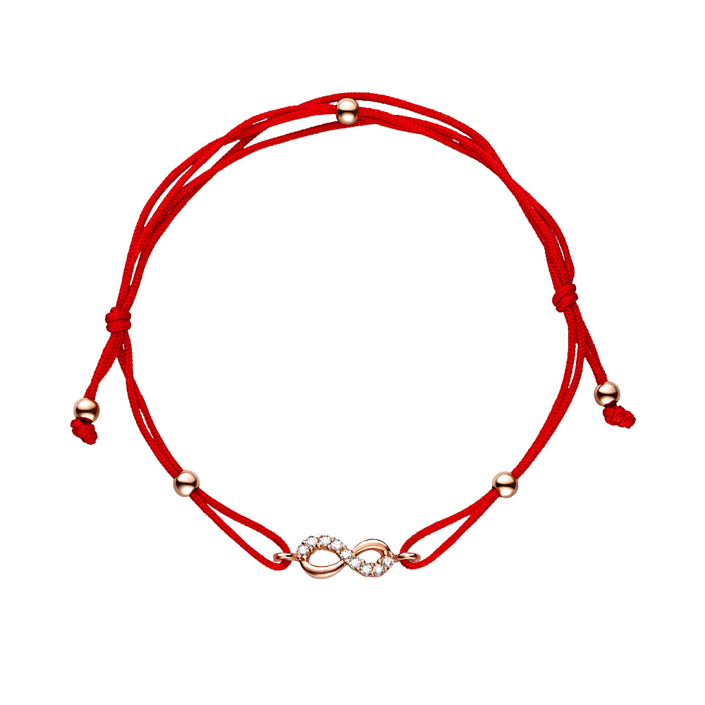 Браслет красный шелковый с золотыми вставками и фианитом - 1405753