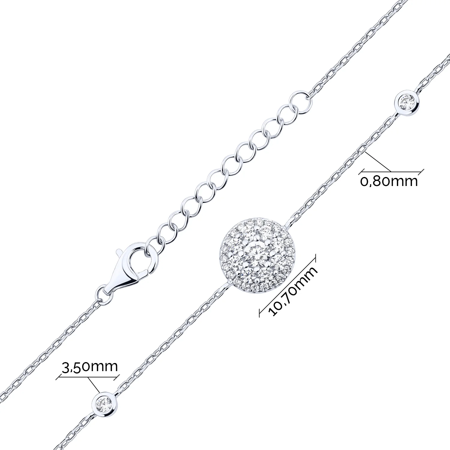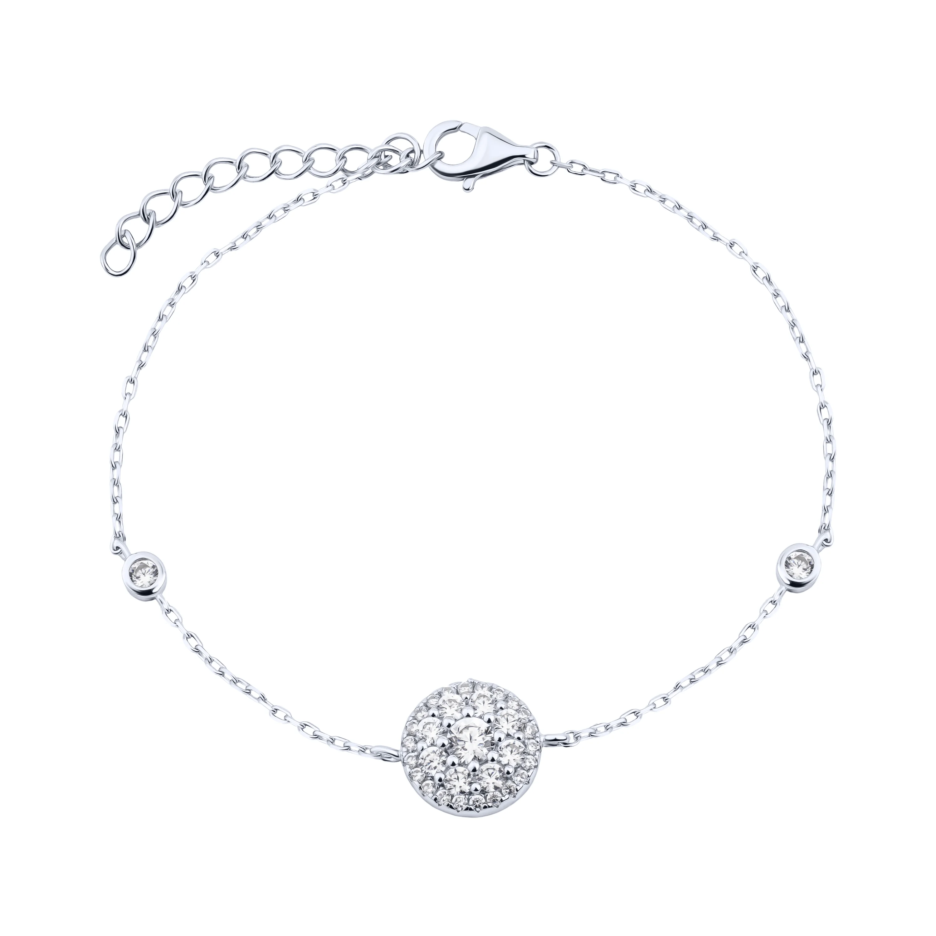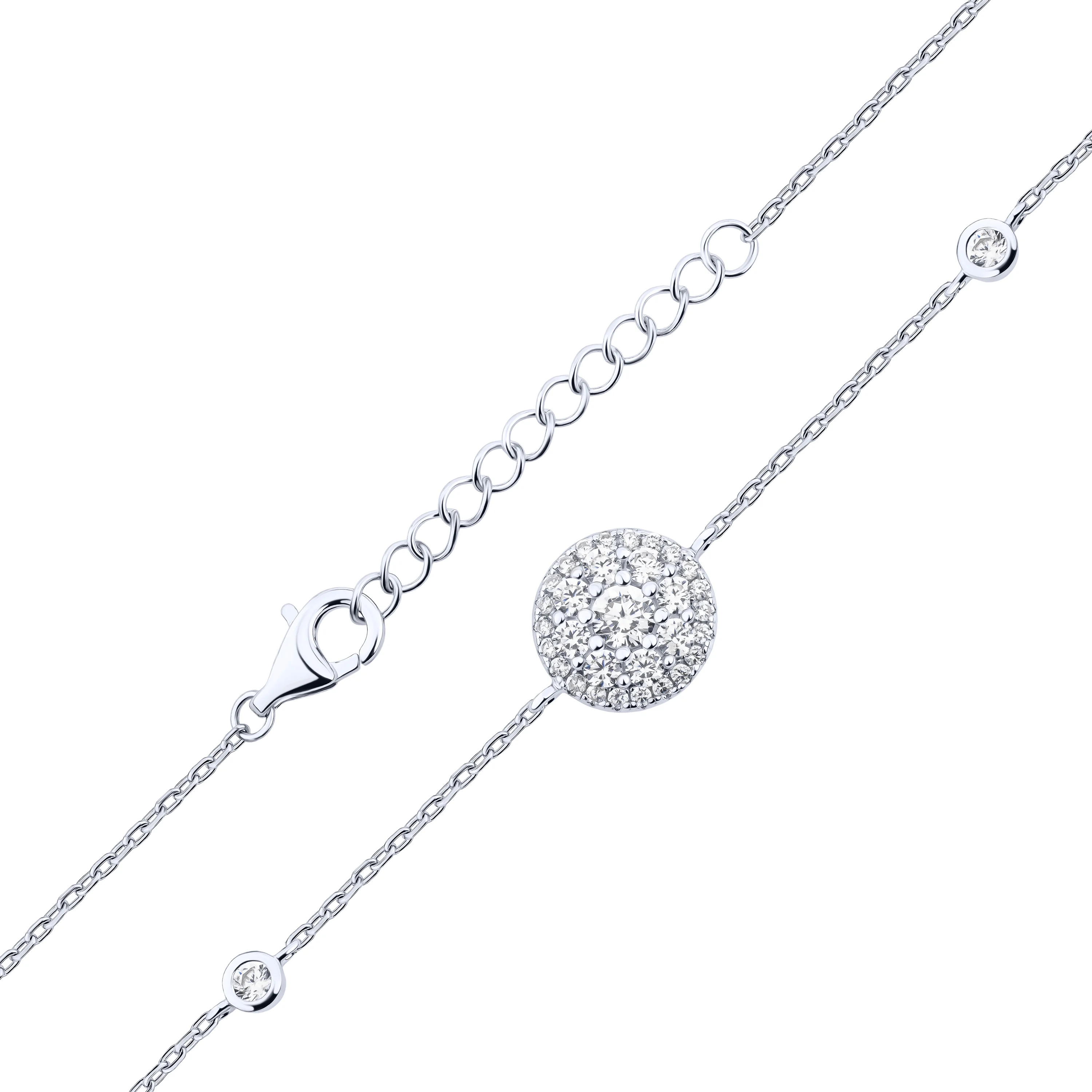 Браслет "Круг" в серебре с фианитами плетение якорь - 2153399