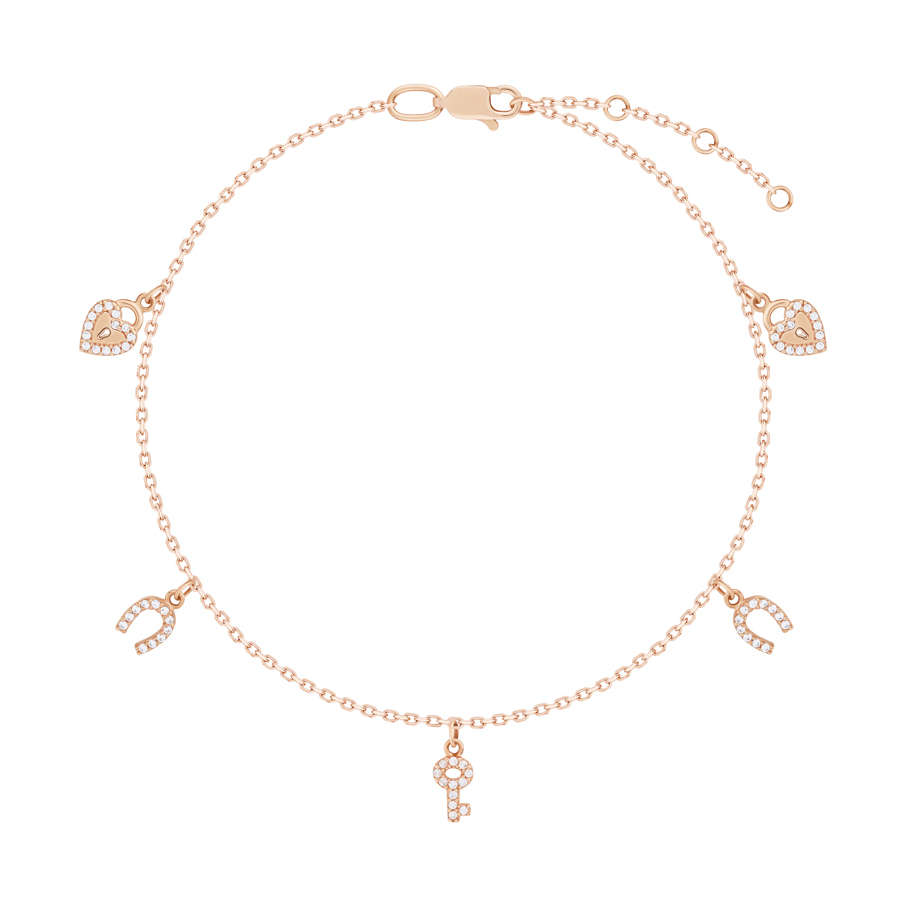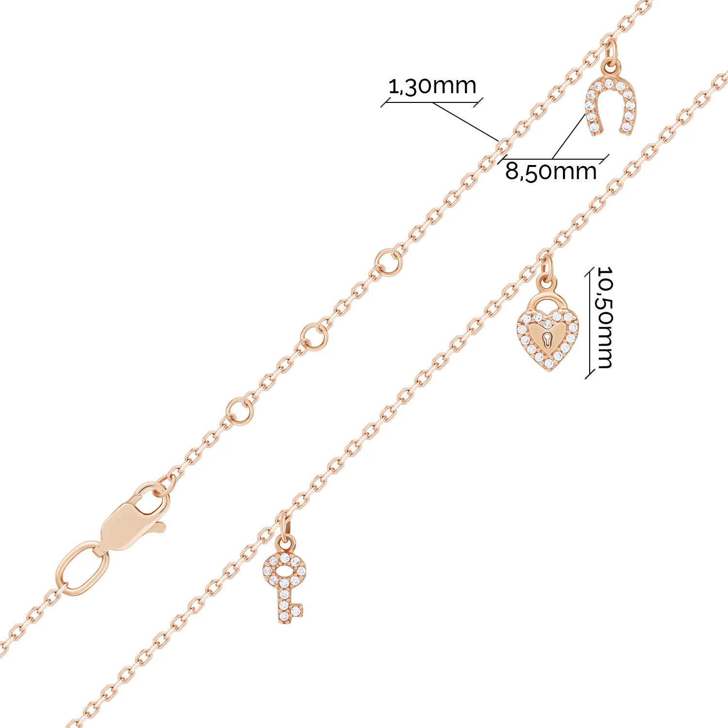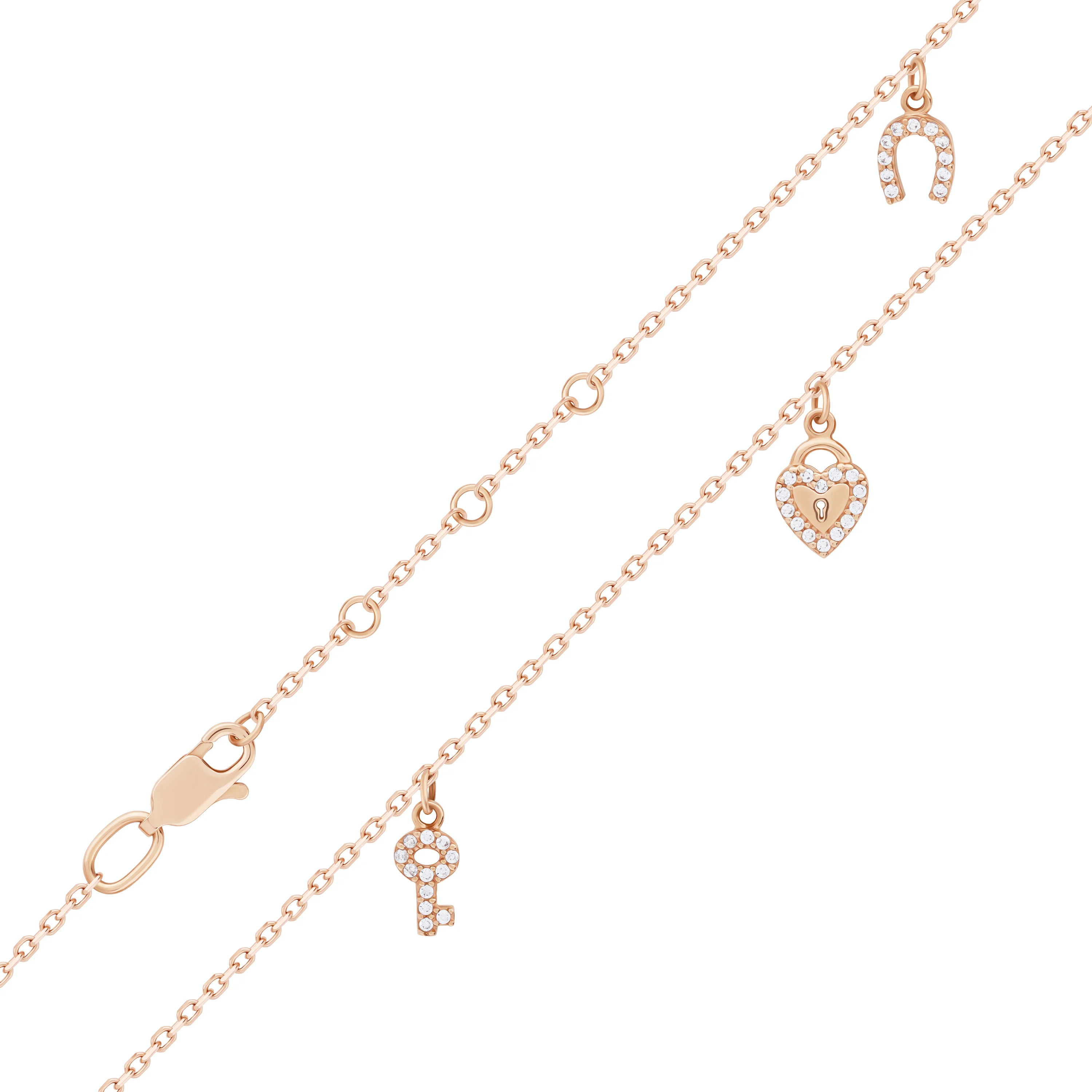 Браслет из красного золота с подвеской "Ключик от сердца" с двойным плетением - 1641279