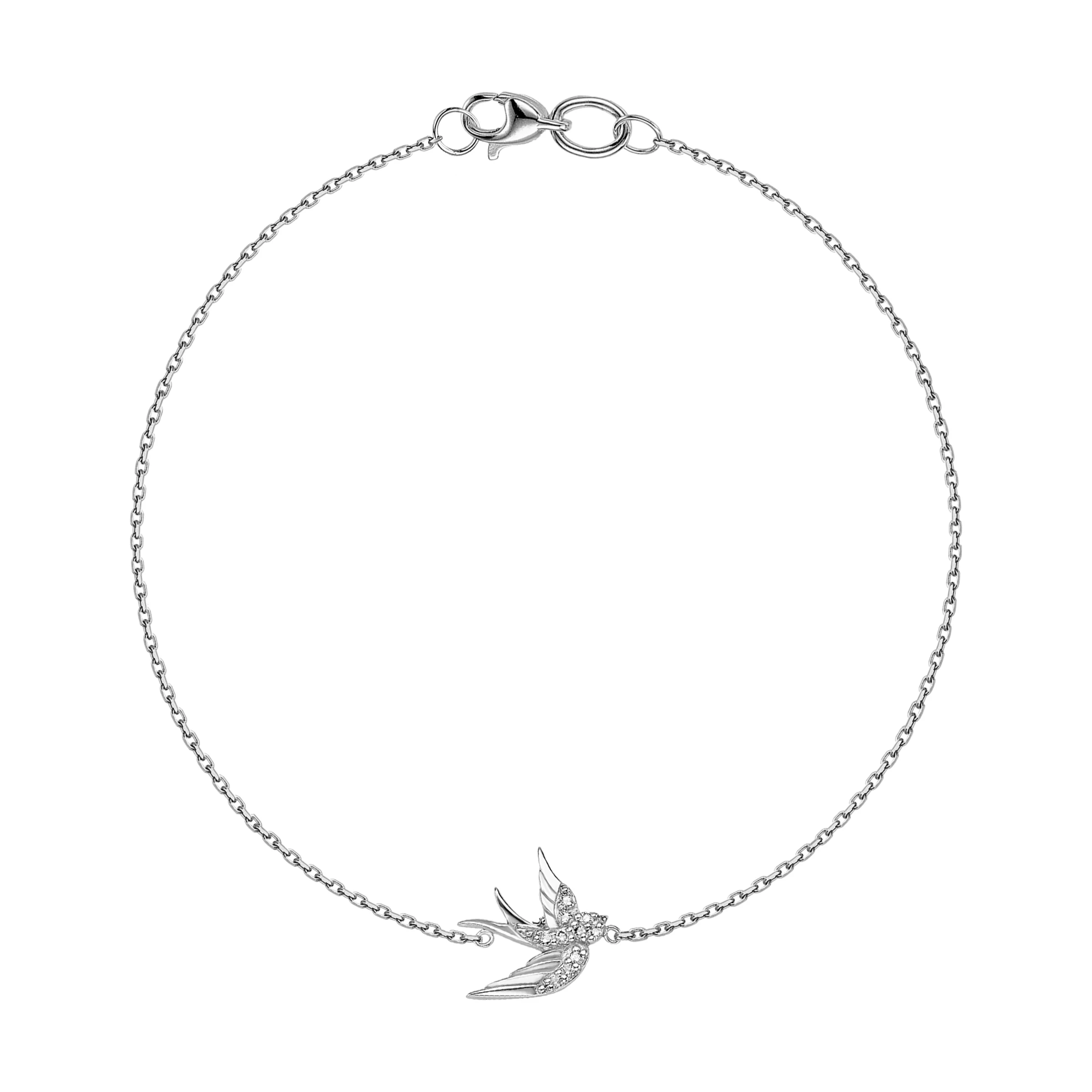 Браслет "Цветок" из белого золота с бриллиантами и якорным плетением - 1879094