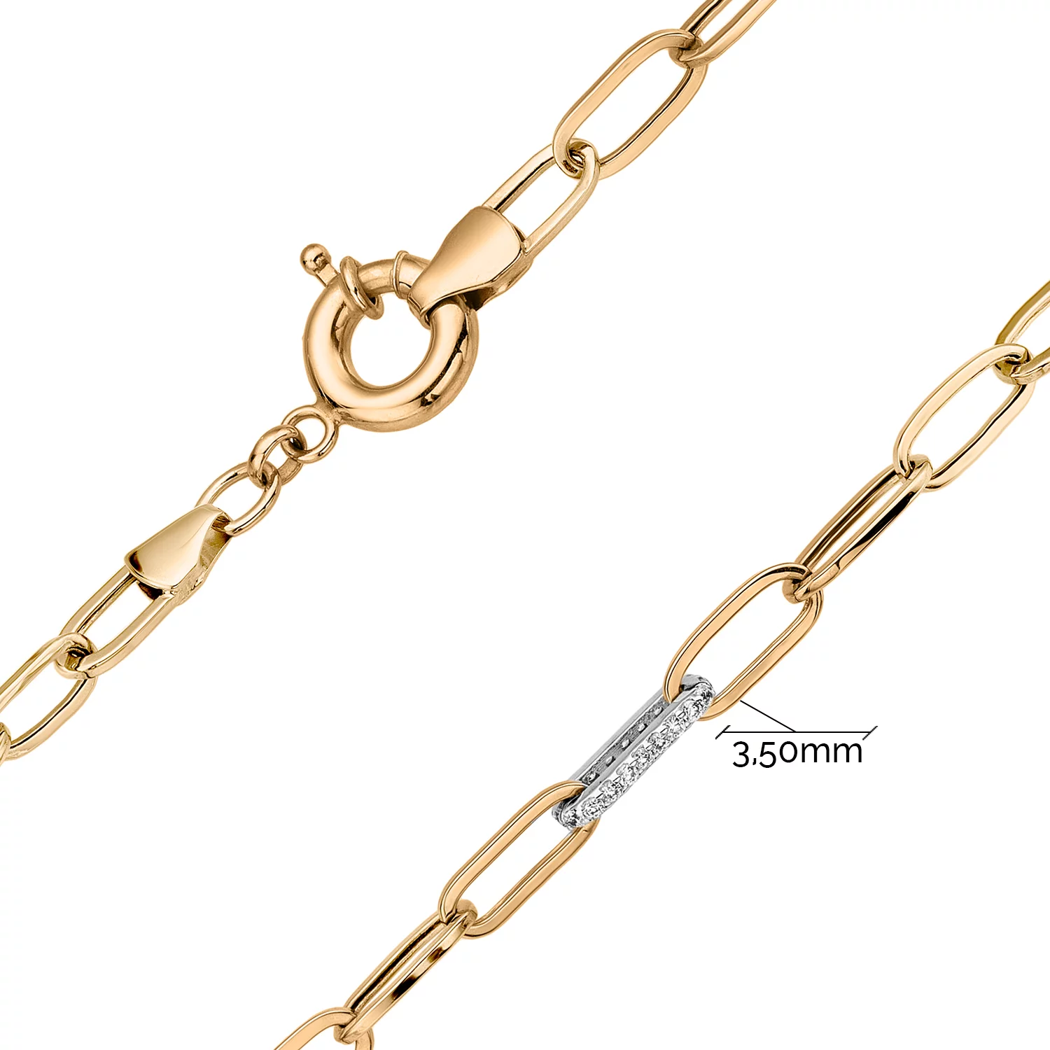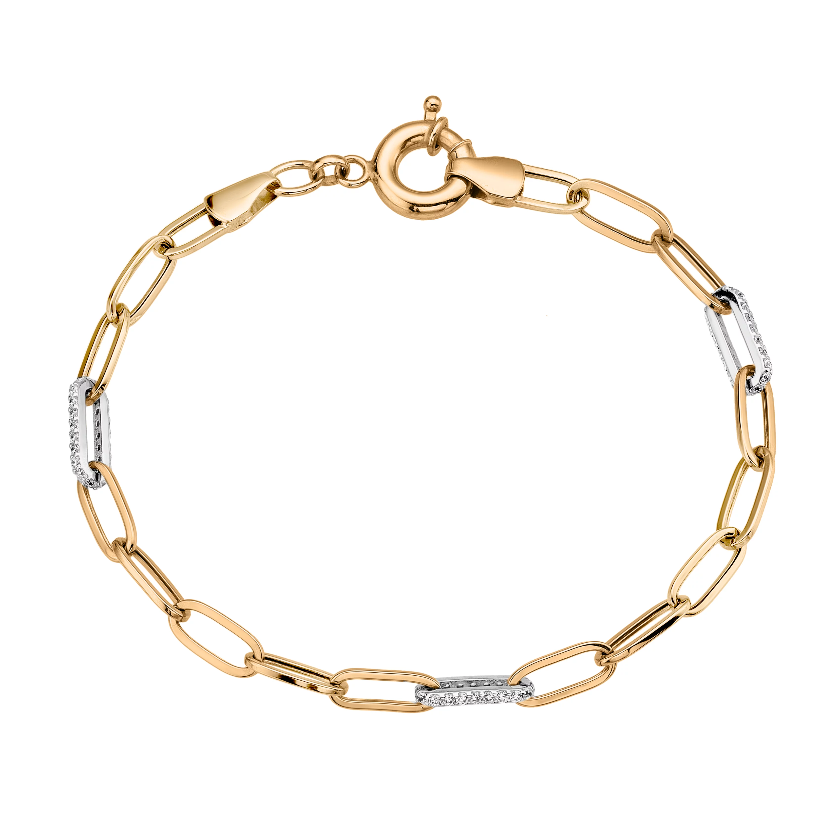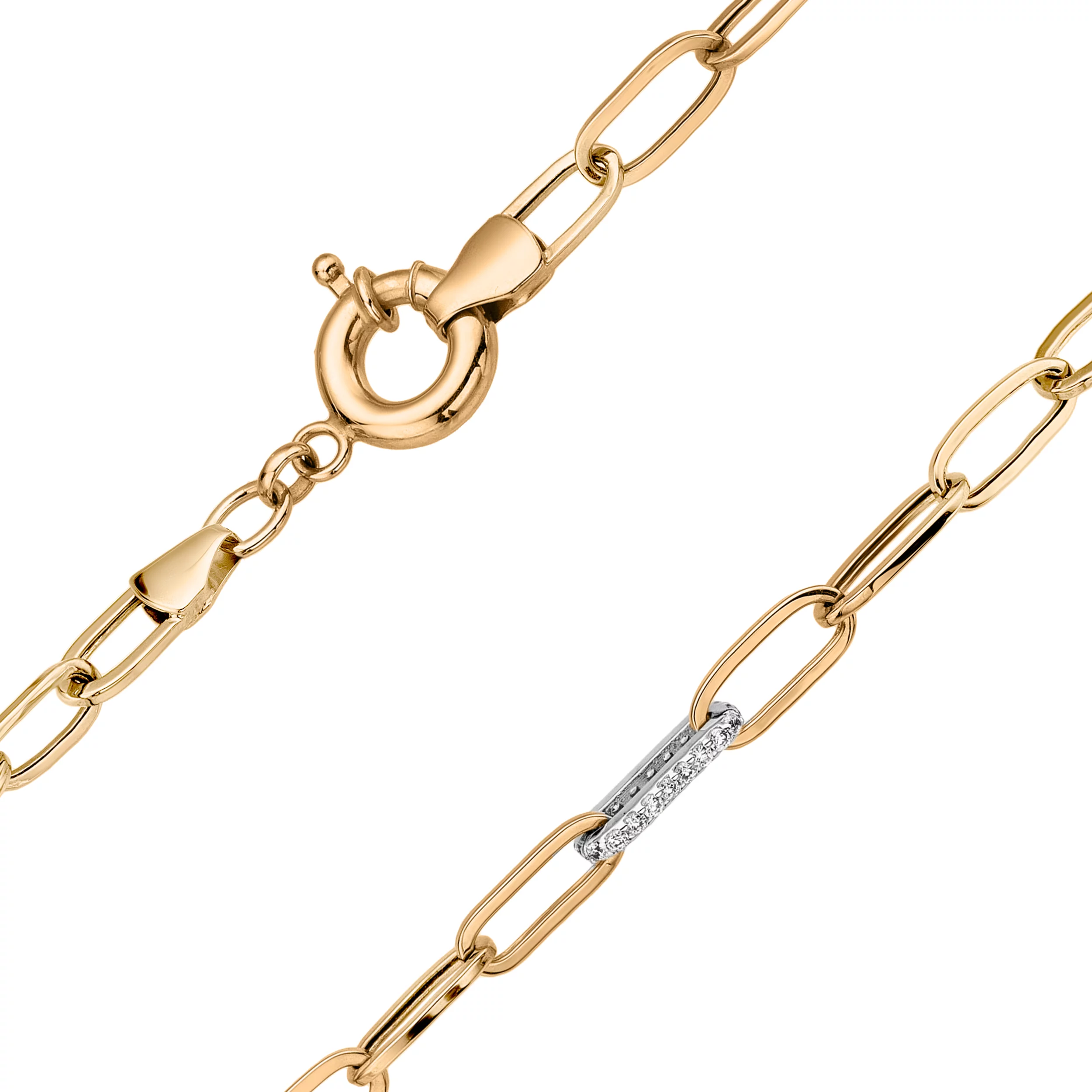 Браслет с фианитом из комбинированного золота якорное плетение - 1617590