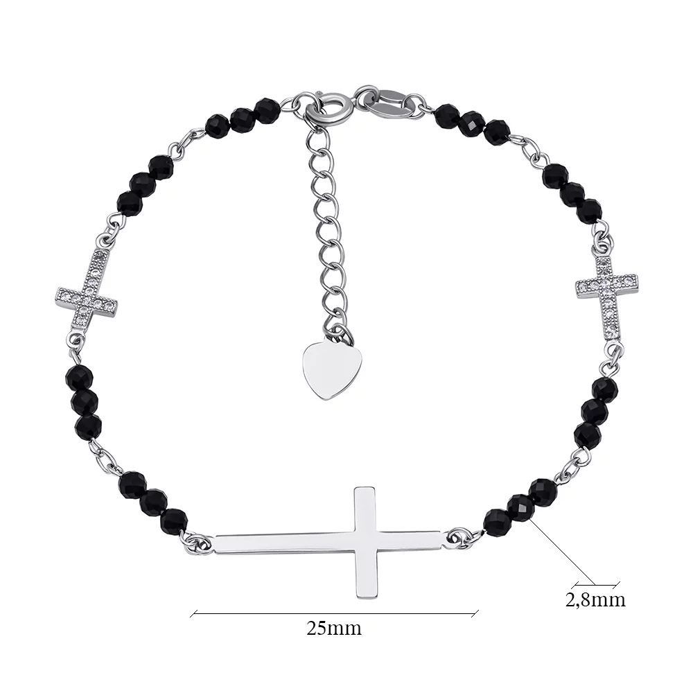 Серебряный браслет с подвесами "Крестики" с фианитом плетение якорь - 1545032