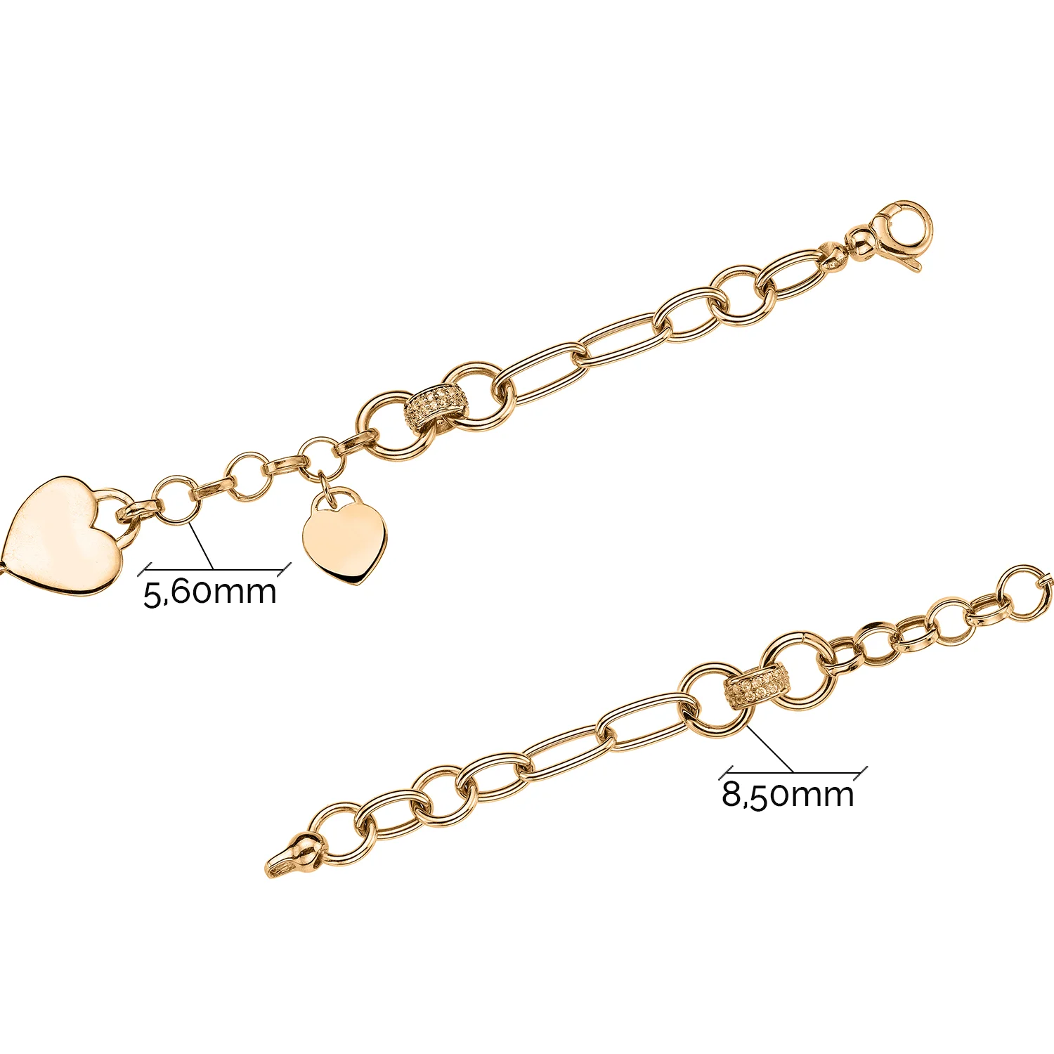 Браслет из комбинированного золота с подвесами "Сердце" и фианитами плетение якорь и шопард - 1698631
