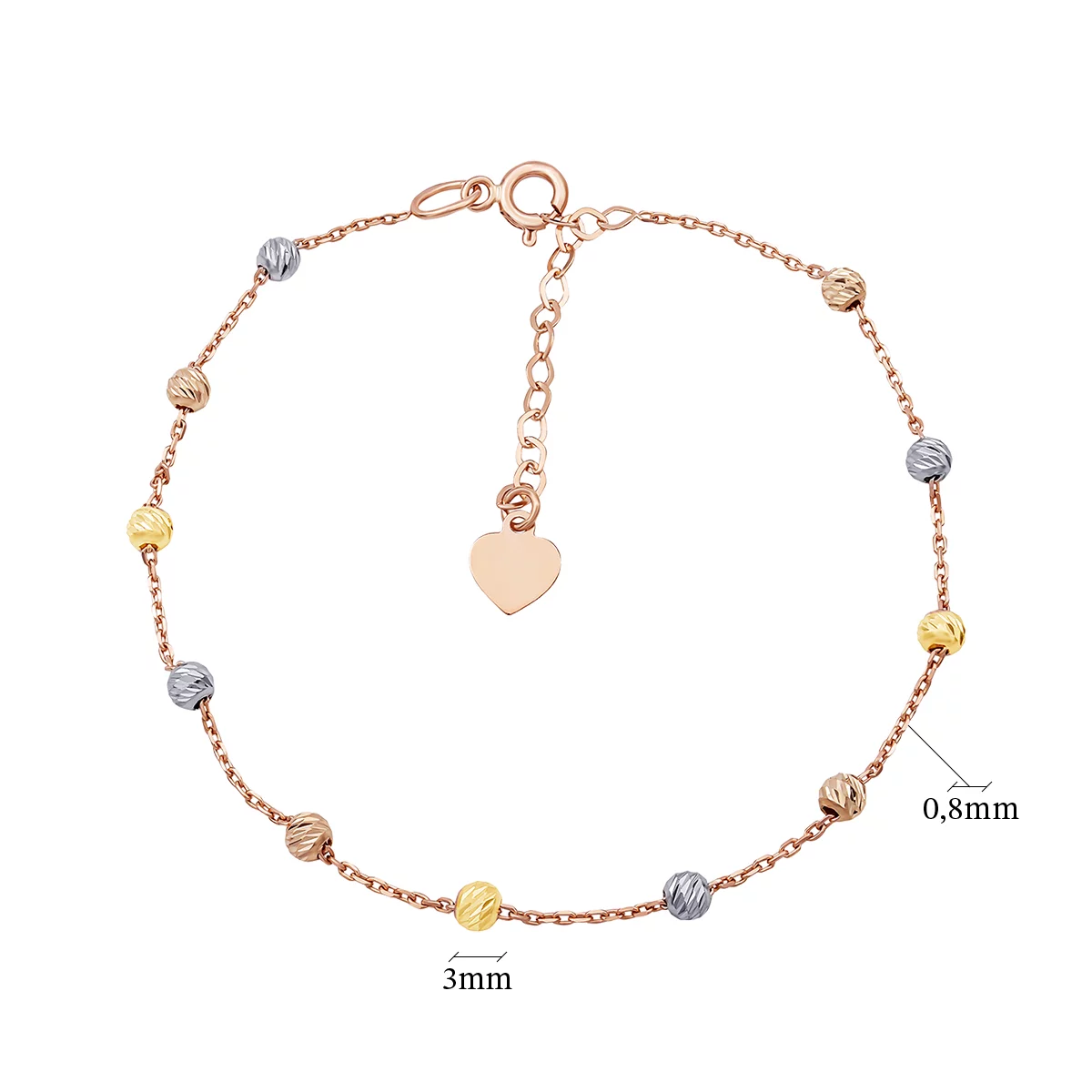 Браслет из комбинированного золота с шариками с якорным плетением - 890883