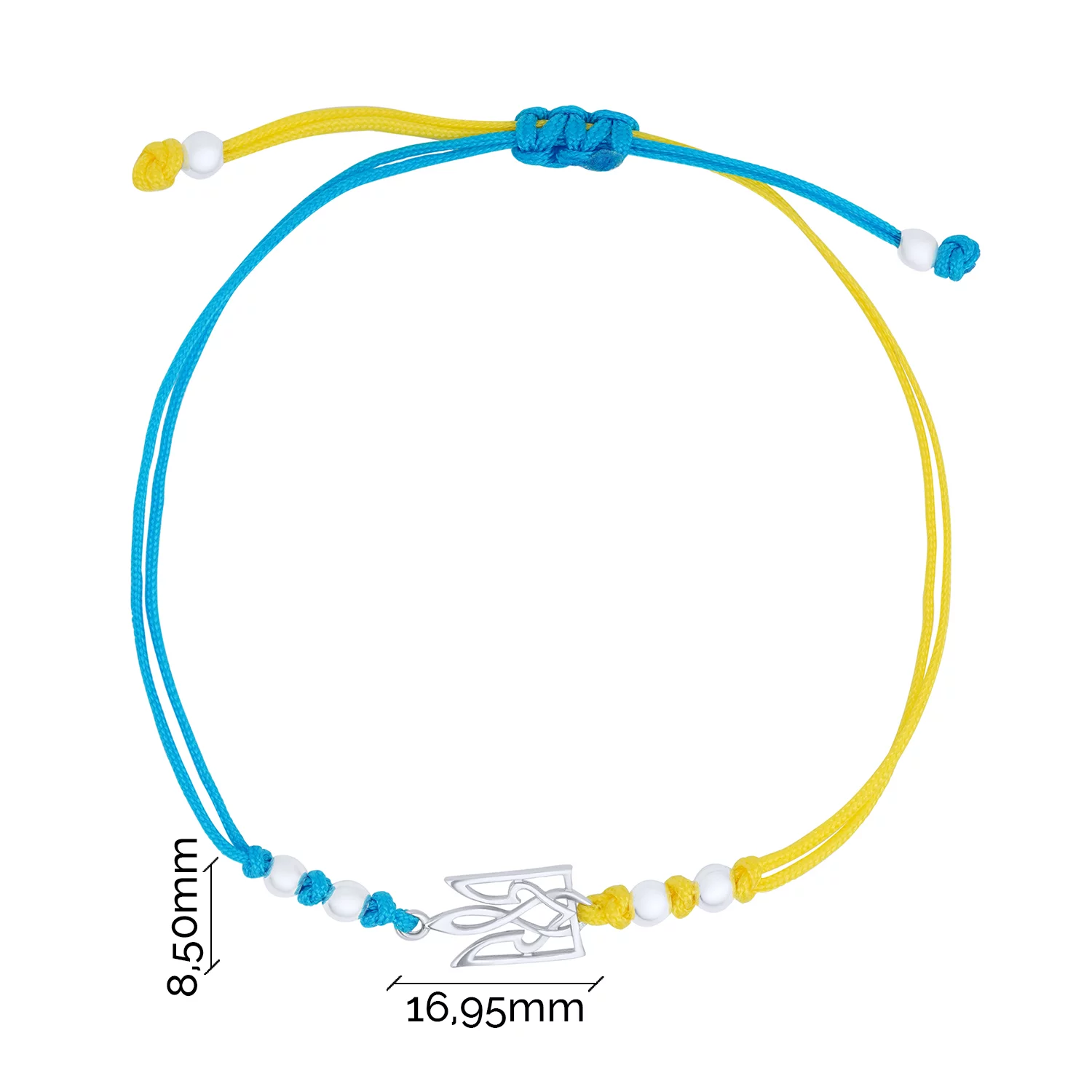 Шелковый браслет со вставкой "Тризуб - Герб Украины" из серебра - 1760273