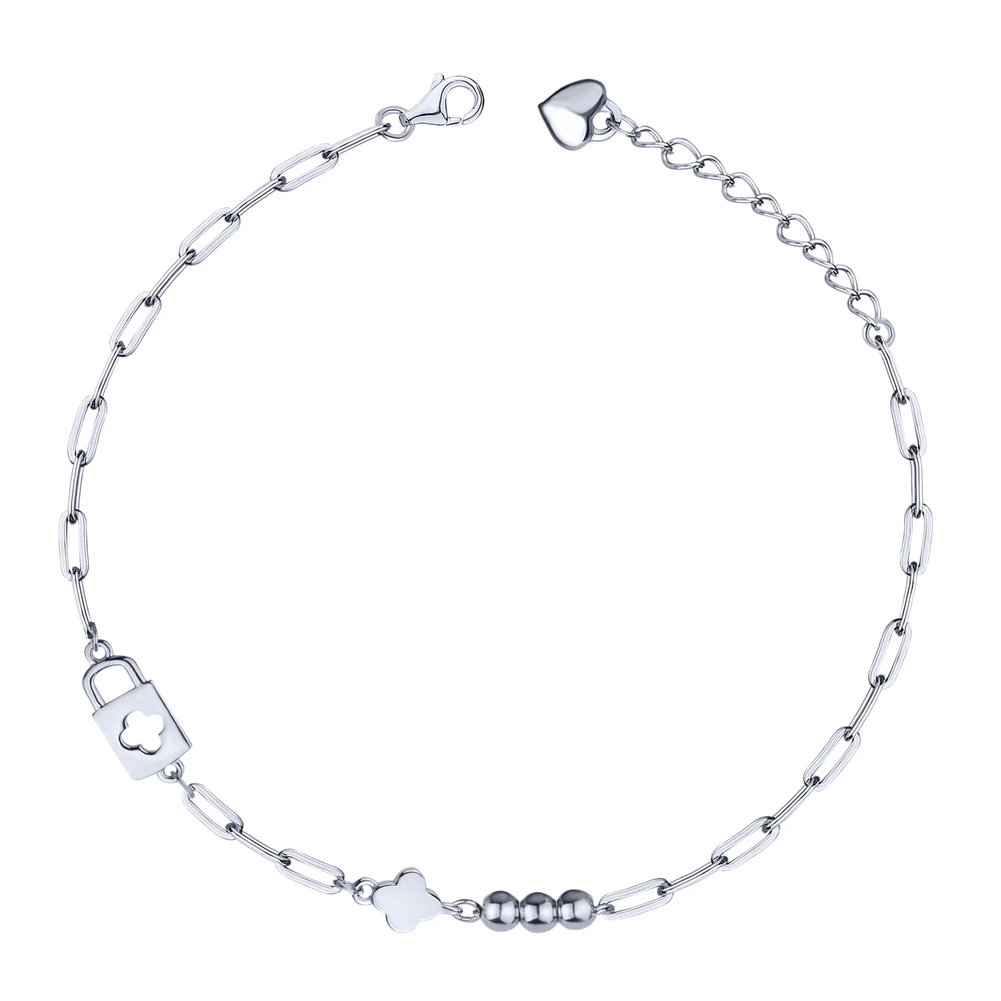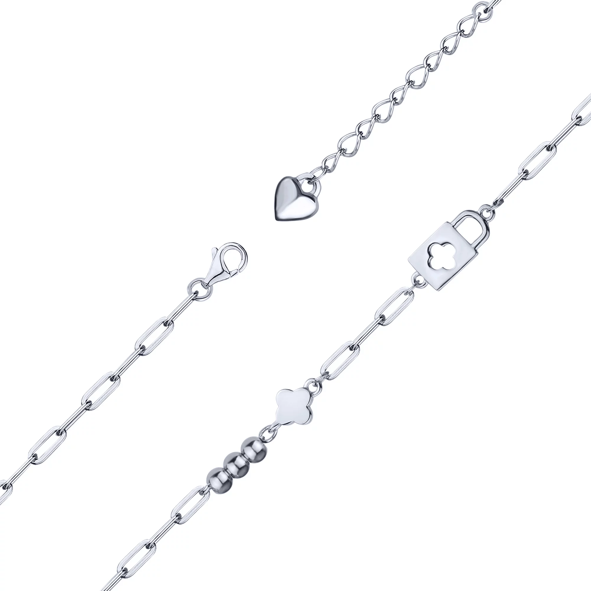 Серебряный браслет с подвесами "Клевер" фианитами и эмалью плетение якорь - 1618329