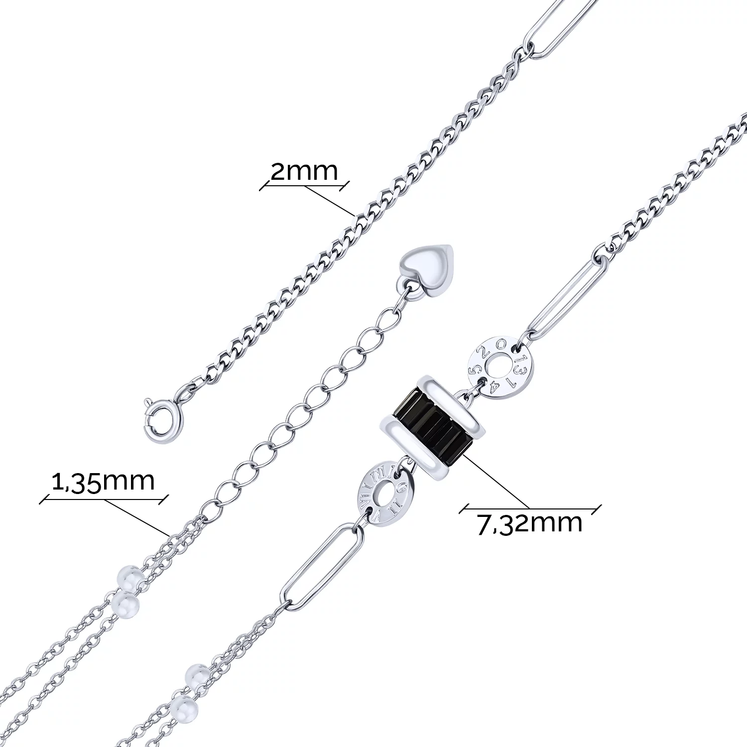 Двойной серебряный браслет с фианитом и шариками двойное плетение - 1715007